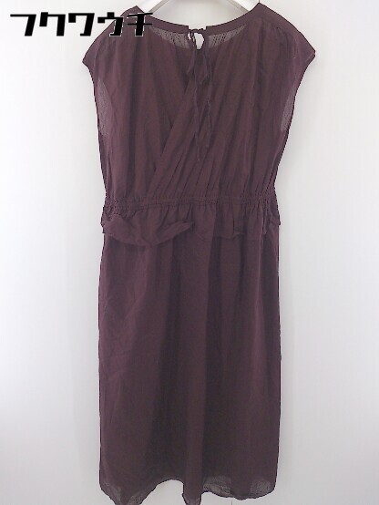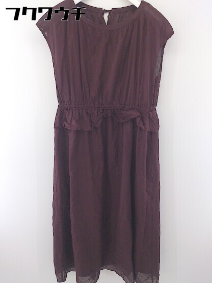 ◇ nano universe ナノユニバース フリル ノースリーブ 膝下丈 フレア ワンピース サイズ 36 バーガンディー レディース