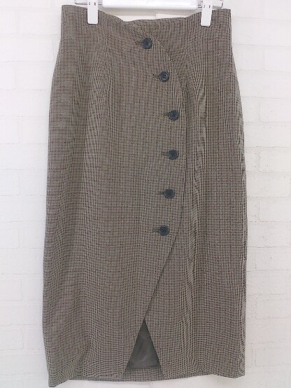 ◇ Doux archives ドゥアルシーヴ 千鳥格子 膝下丈 タイト スカート サイズS ベージュ系 ブラウン レディース P