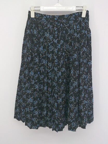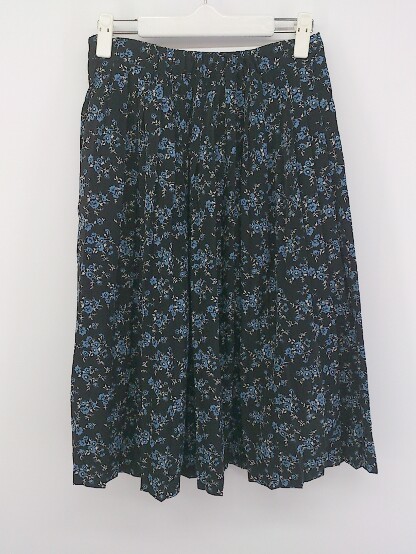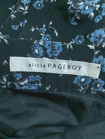 ◇ PAGEBOY ALICIA ウエストゴム ボタニカル 膝下丈 プリーツ スカート サイズF ブラック ブルー ホワイト系 レディース P
