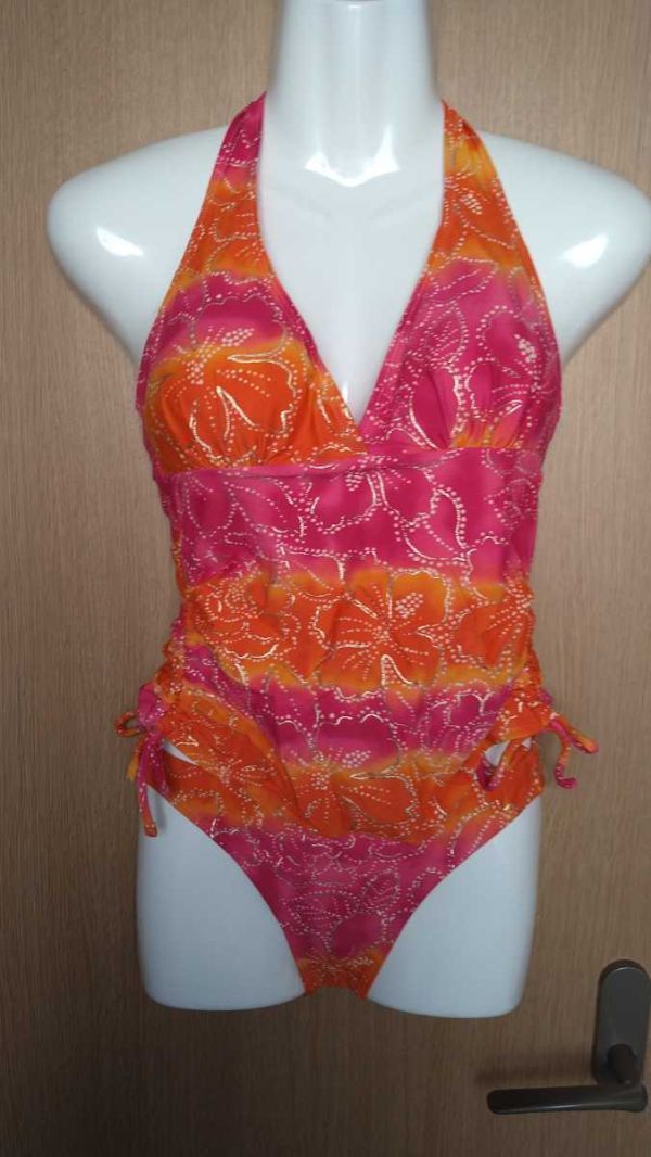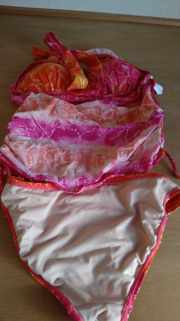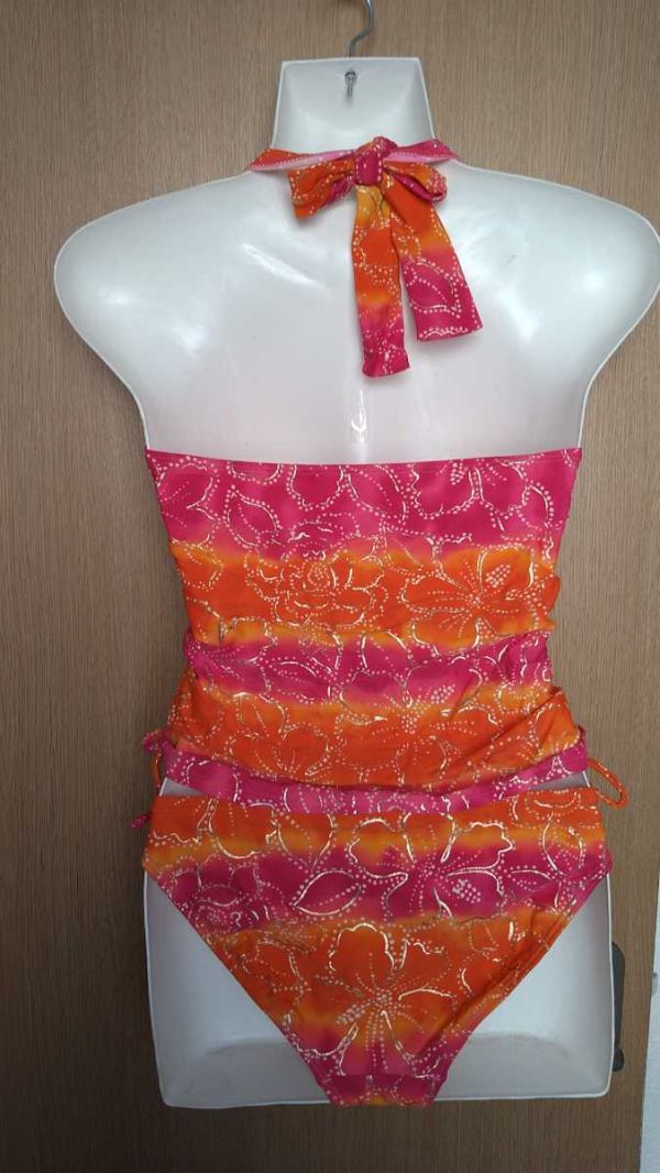 オレンジ×ショッキングピンク×金色のタンキニ水着2点セットです
