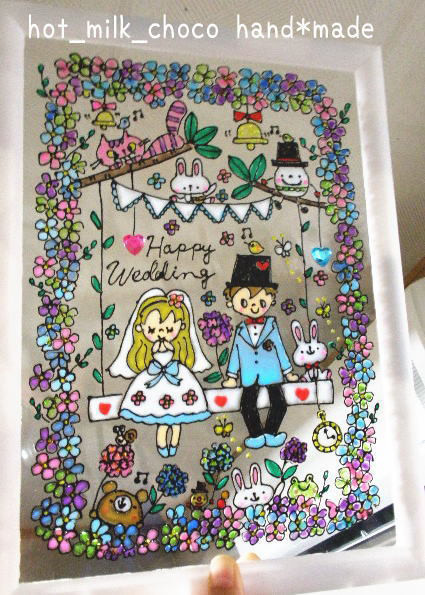 ★NO.A53★ステンドグラス風・A4サイズ・アリス・結婚式・ウエディングドレス・プレゼント・結婚祝い・ハンドメイド・welcomeボード・絵
