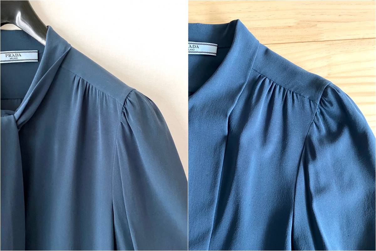 袖山と前肩、ヨーク下にはギャザーが綺麗に寄せられています。
