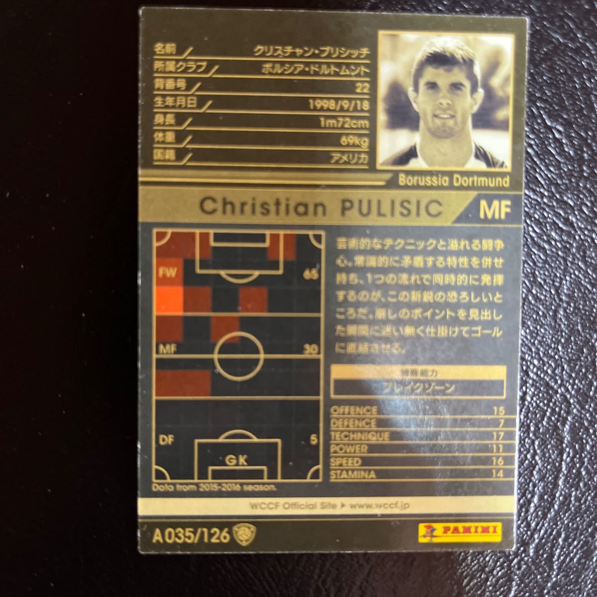 WCCF 16-17 A035 クリスチャン・プリシッチ footista Panini