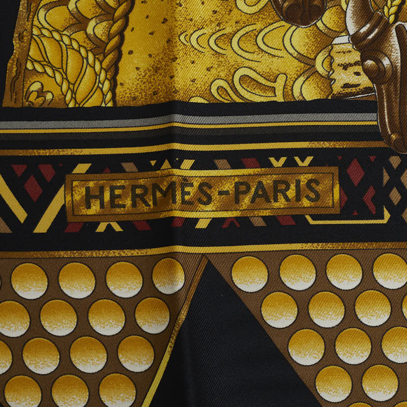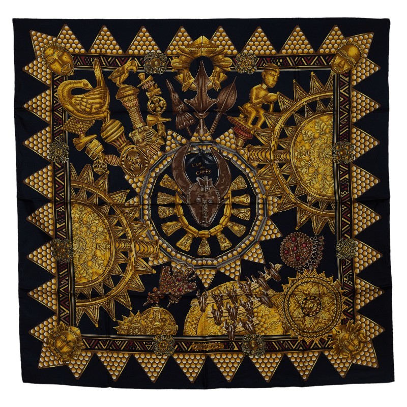 エルメス カレ90 LOR DES CHEFS 首長達の金 スカーフ ブラック ゴールド シルク レディース HERMES 【中古】