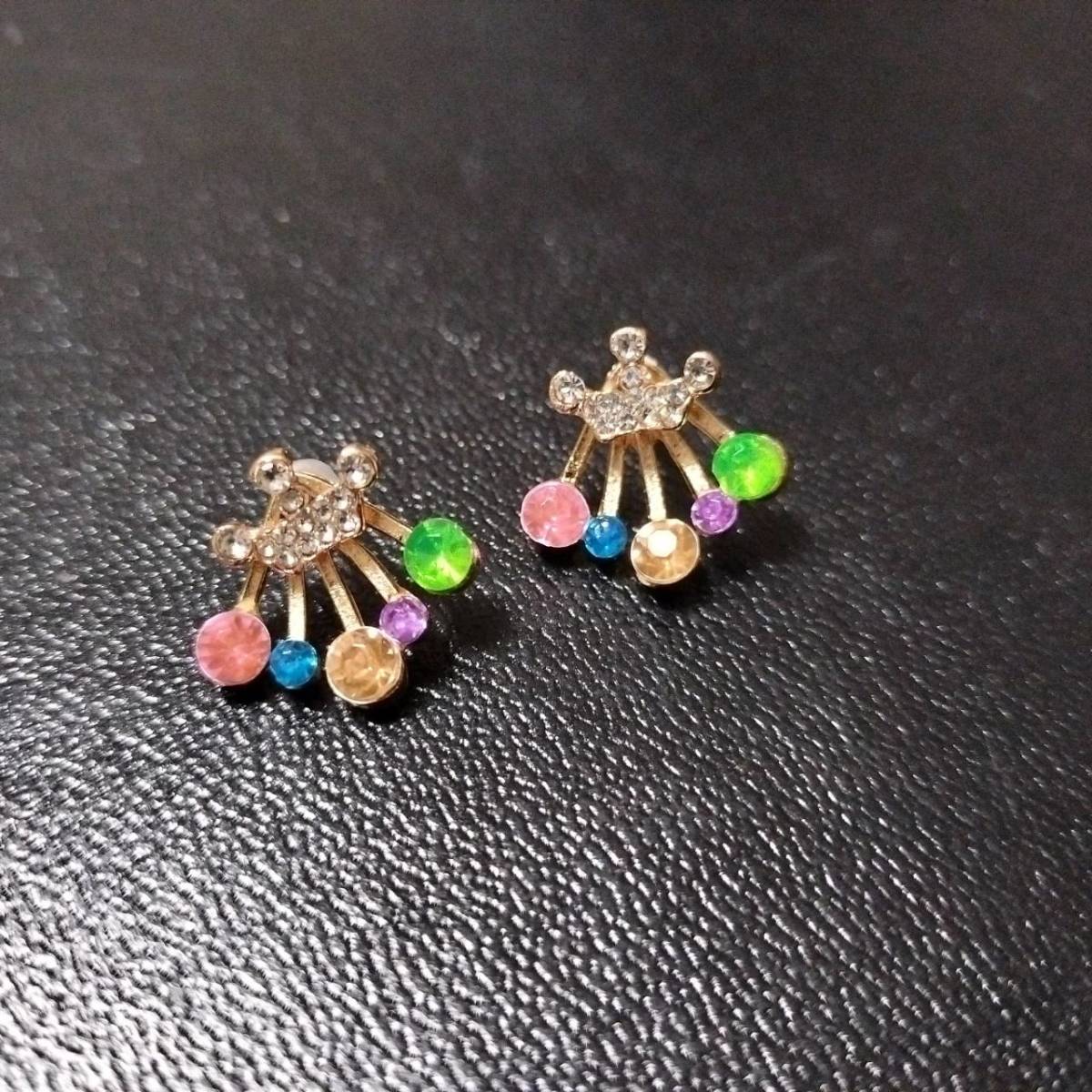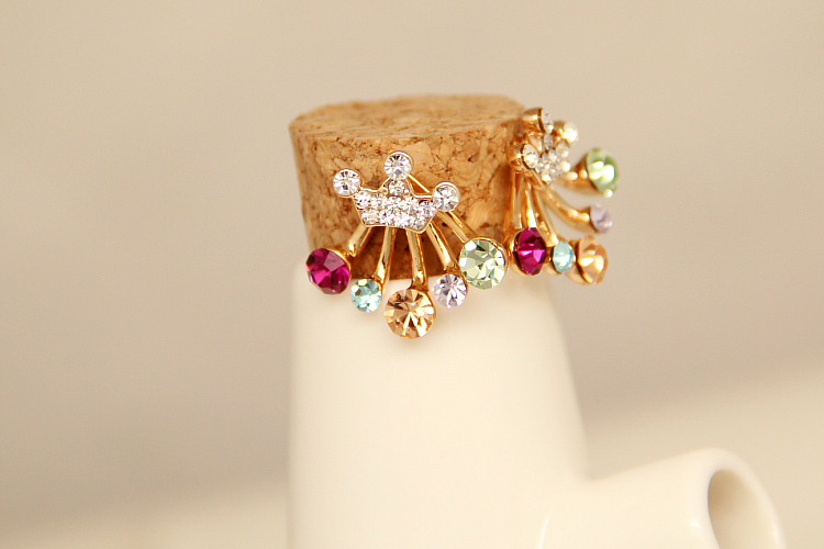 商品説明ピアス ゴールド 王冠 クラウン カラフル クリスタル レディース 韓国 多色 ラインストーン スタッド ジュエリー 可愛い