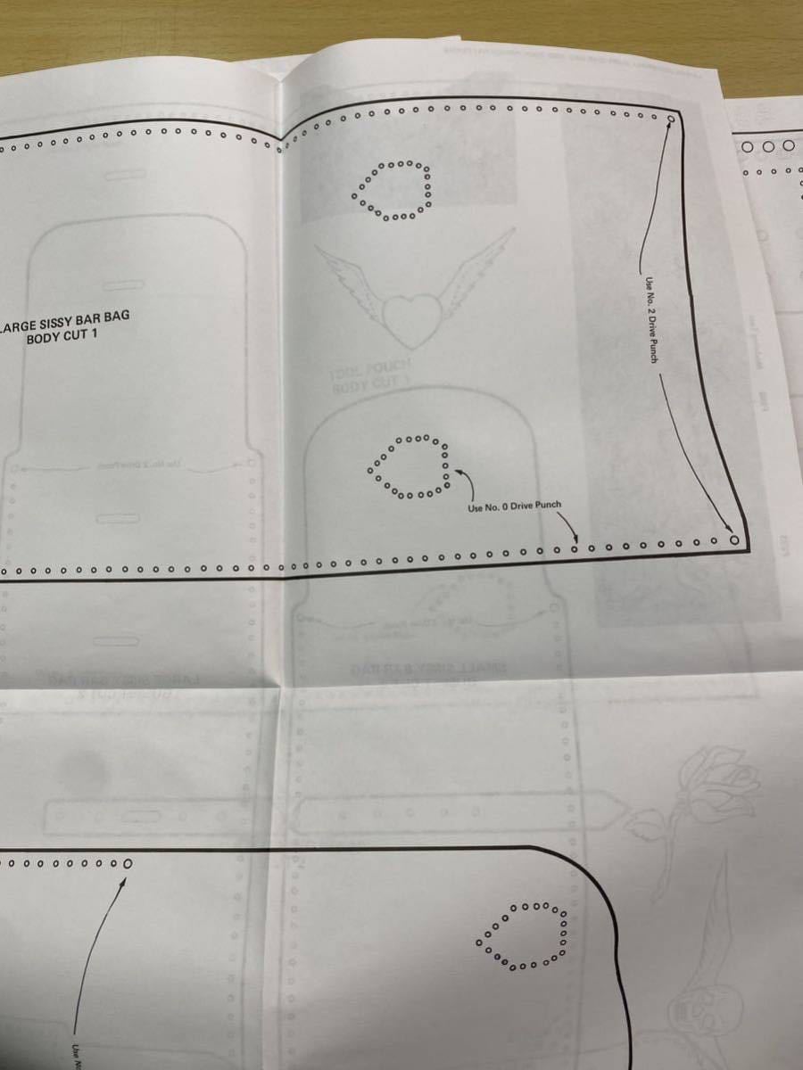 ハーレーなどのアメリカンバイクに、サドルバックを制作するための型紙です。