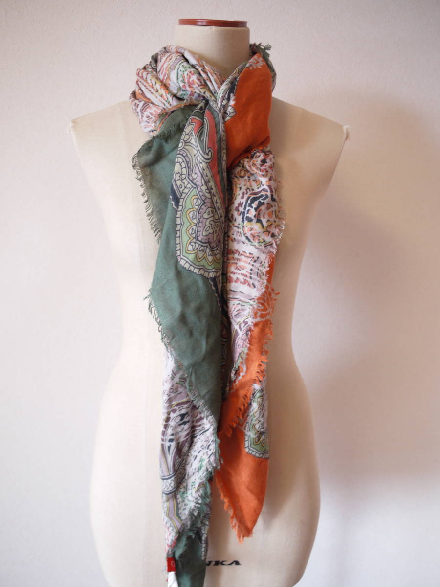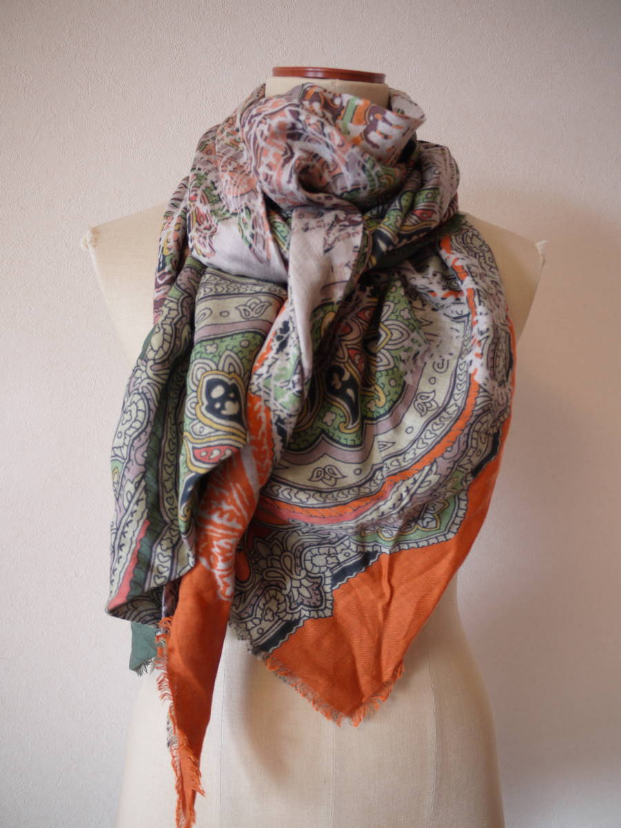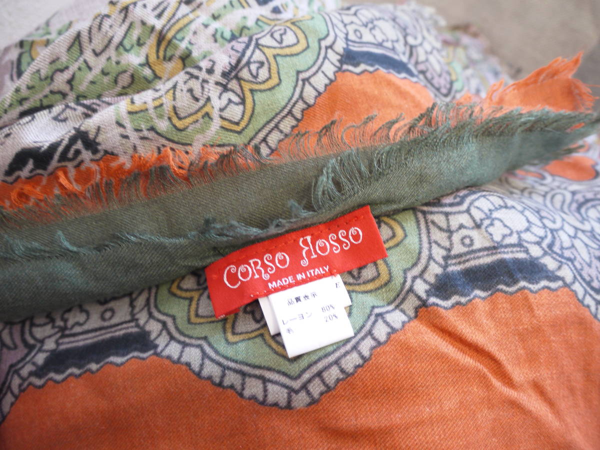 CORSO ROSSO コルソロッソ プリント大判ストール オレンジ×グリーン 美品