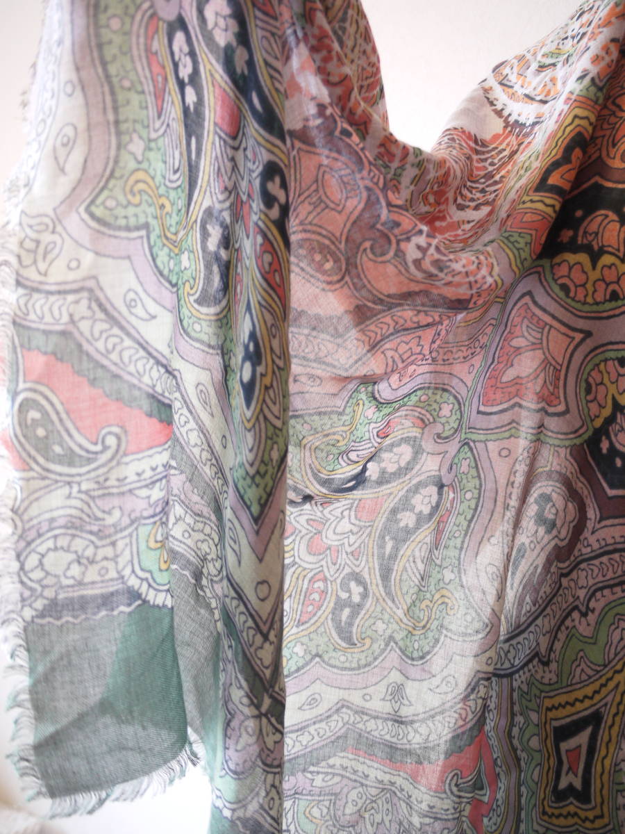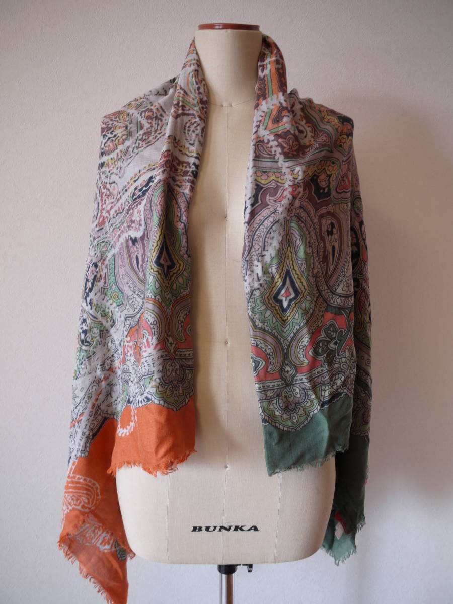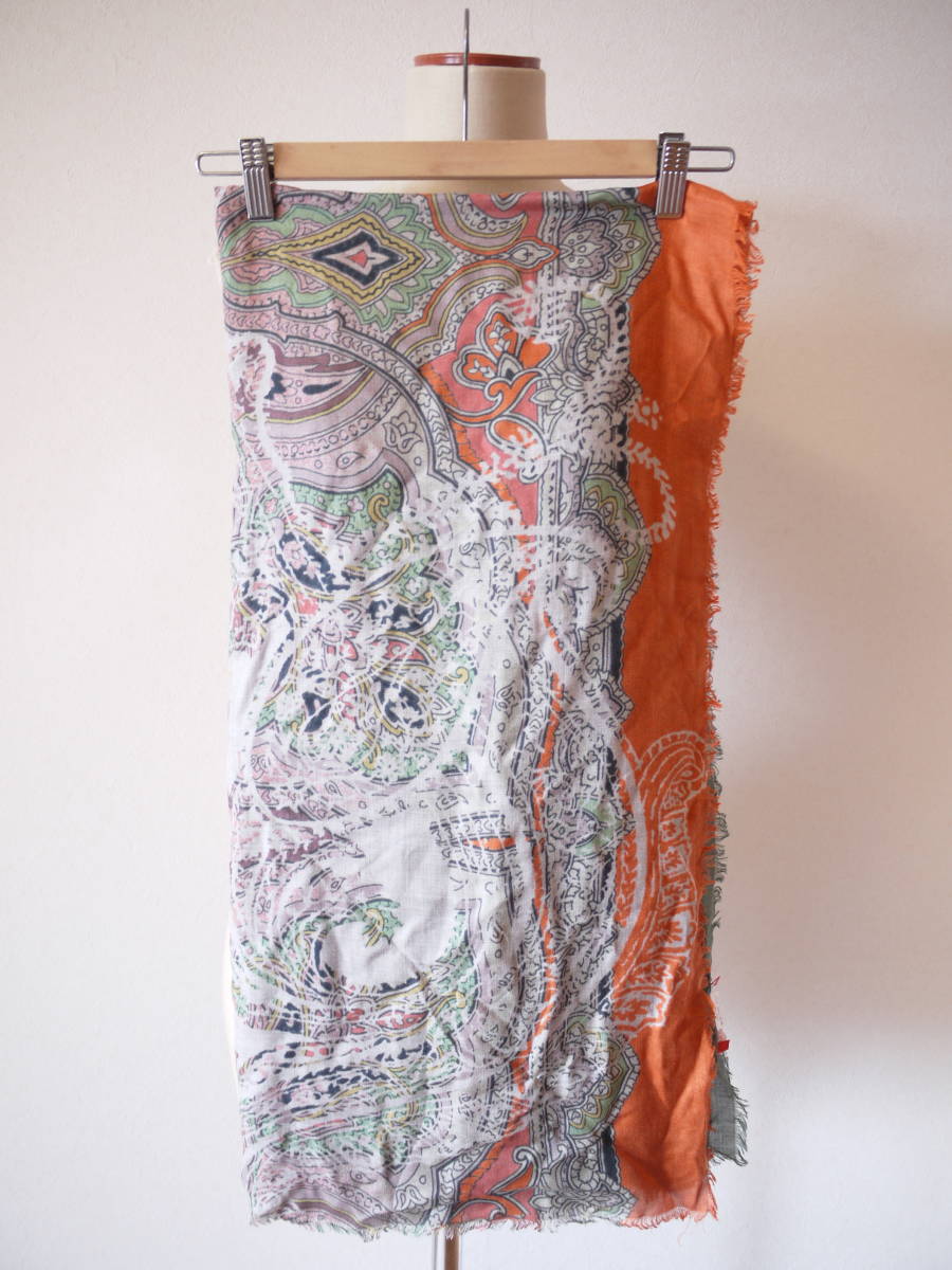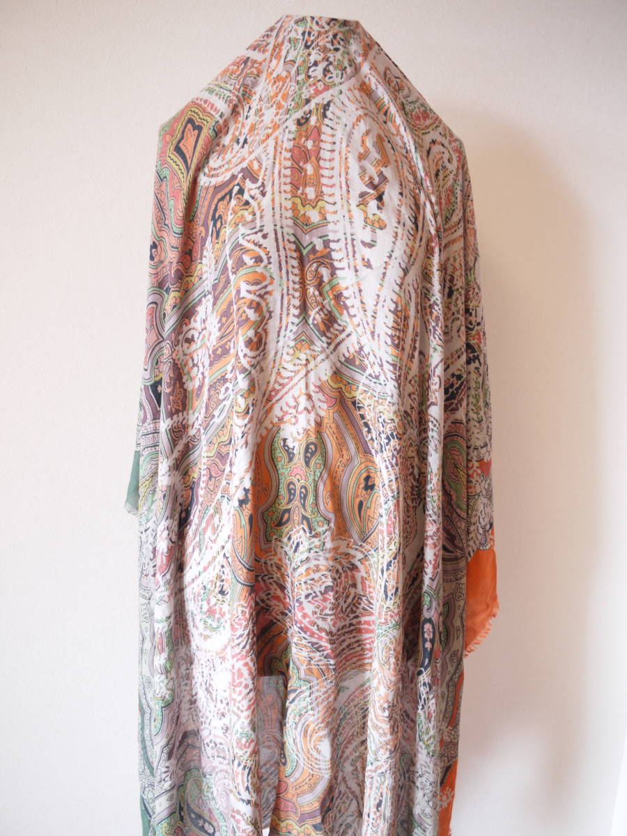 CORSO ROSSO コルソロッソ プリント大判ストール オレンジ×グリーン 美品