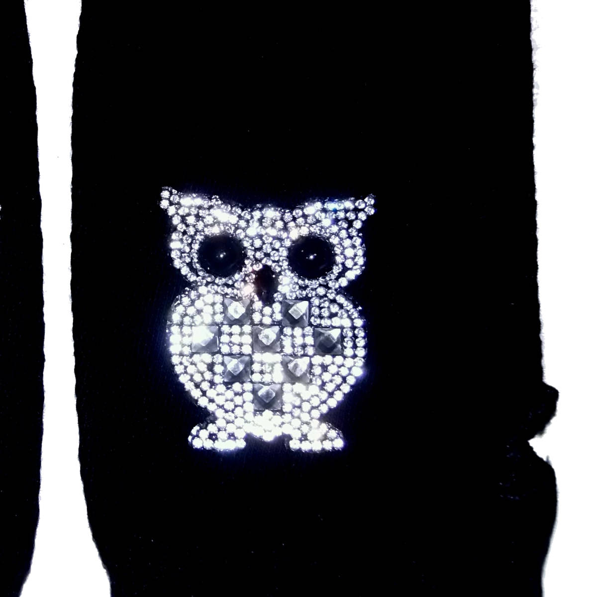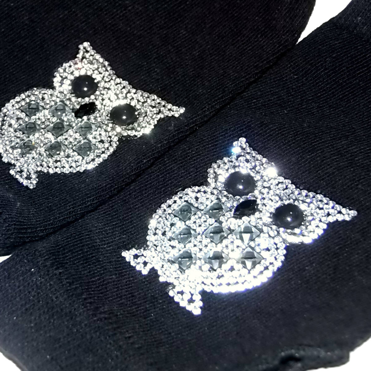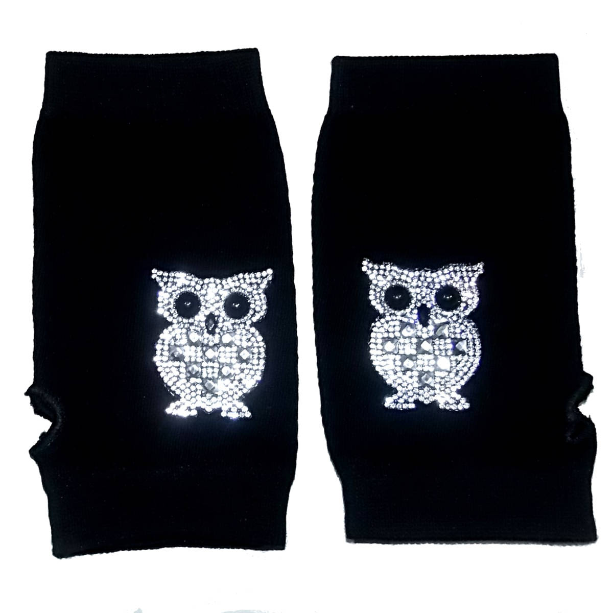 ラインストーン フクロウ ふくろう 梟 ワッペン ハンドカバー グローブ 手袋 ハンドウォーマー アームウォーマー 半指 指無し