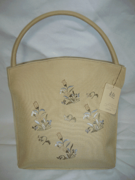 秀匠 ☆ 在庫品 正絹 刺繍入りの洒落たバック ベージュ地 06952 ★