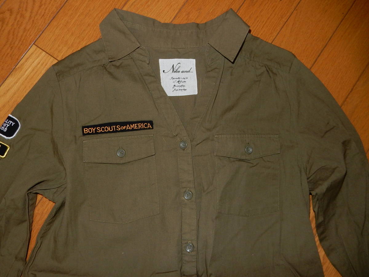 七分袖、ミリタリー調がかわいいオーバーシャツです。