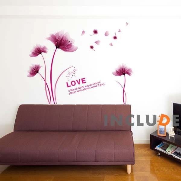 ウォールステッカー 赤い花 レッド 花 花びら コサージュ キラキラ 輝く 煌き 透明感ある花 透きとおる クリア