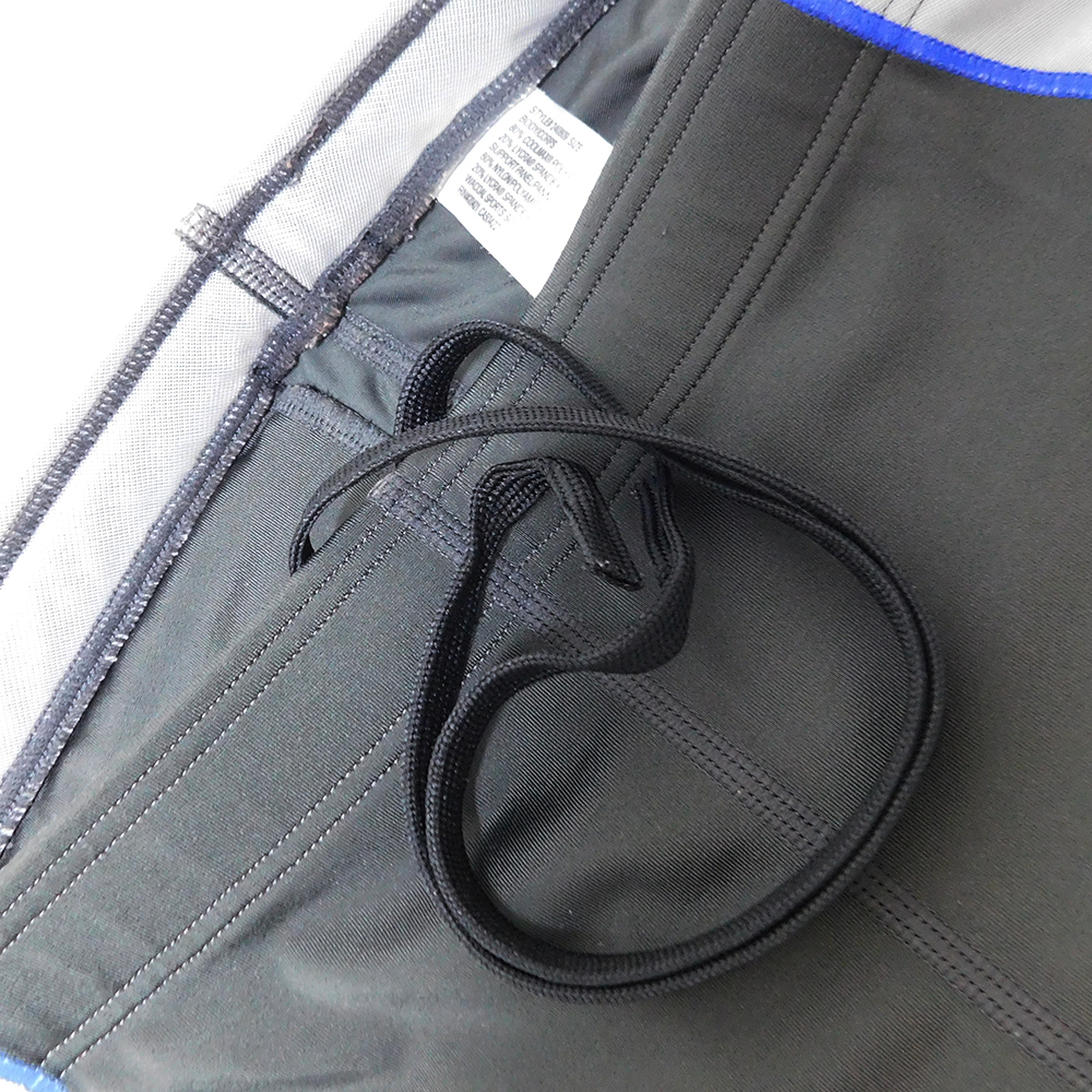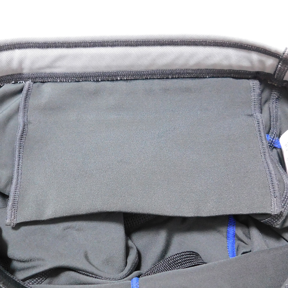 右後部にジッパー開閉タイプのポケットあり(全開で間口幅約9.5cm、深さ約7cm) 他にポケットなし ウエスト平ゴムは幅3.5cmで強力 ウエストに調節紐あり |