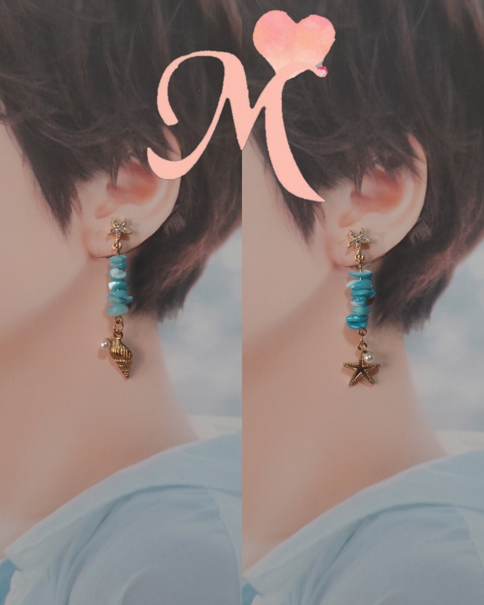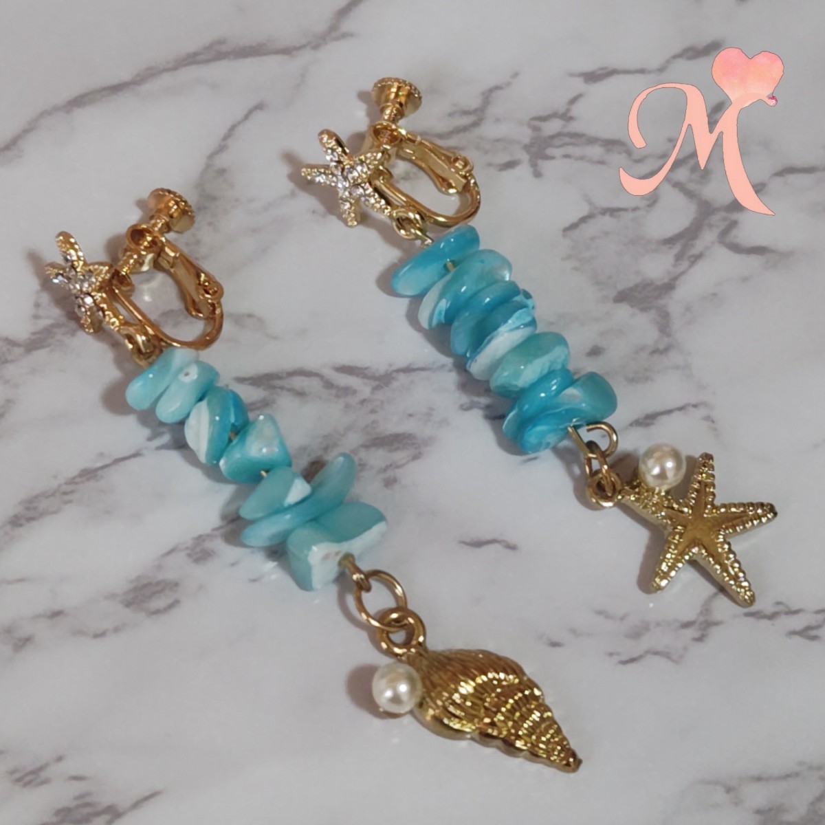 ハンドメイド イヤリング or ピアス ヒトデ ニッケルフリー 変退色防止加工済み ピアス ポスト部分がシルバー925 貝
