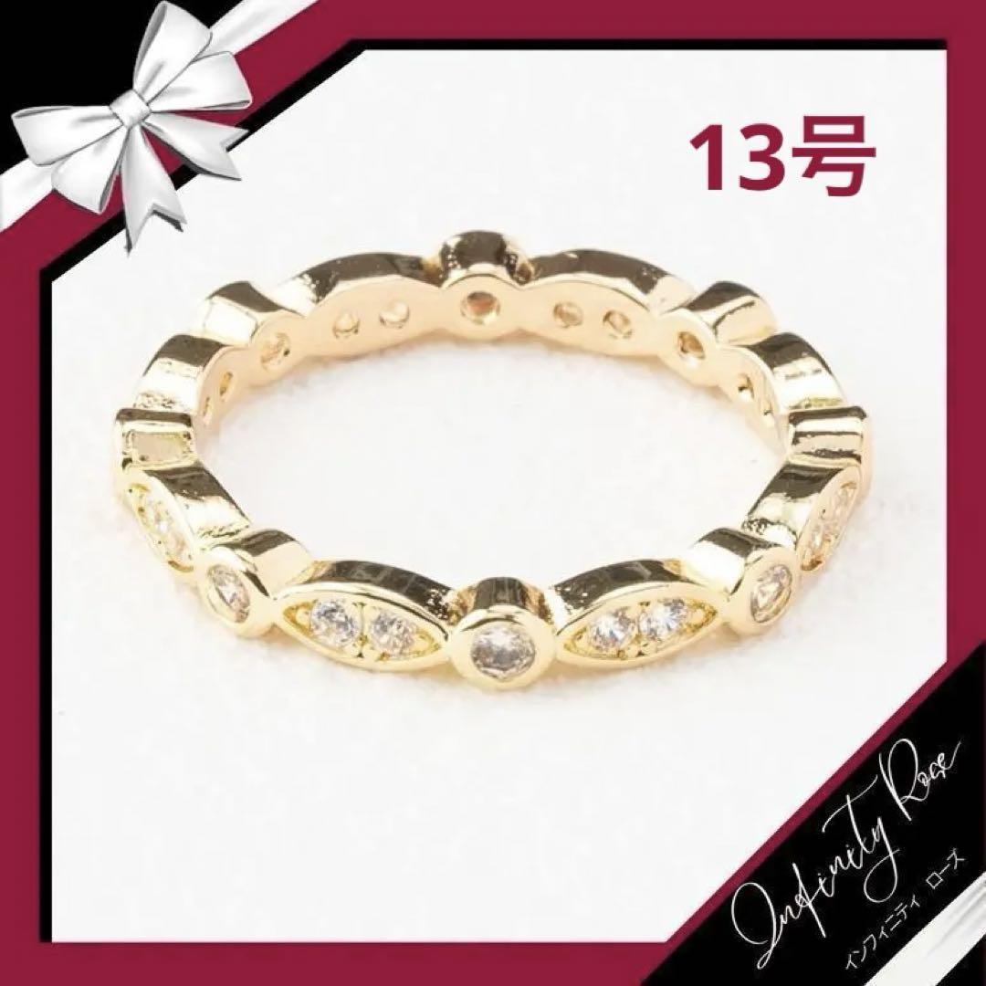 (R031G)13号 ゴールドメビウス繋がる大人リボンリング 高価爪留め 指輪
