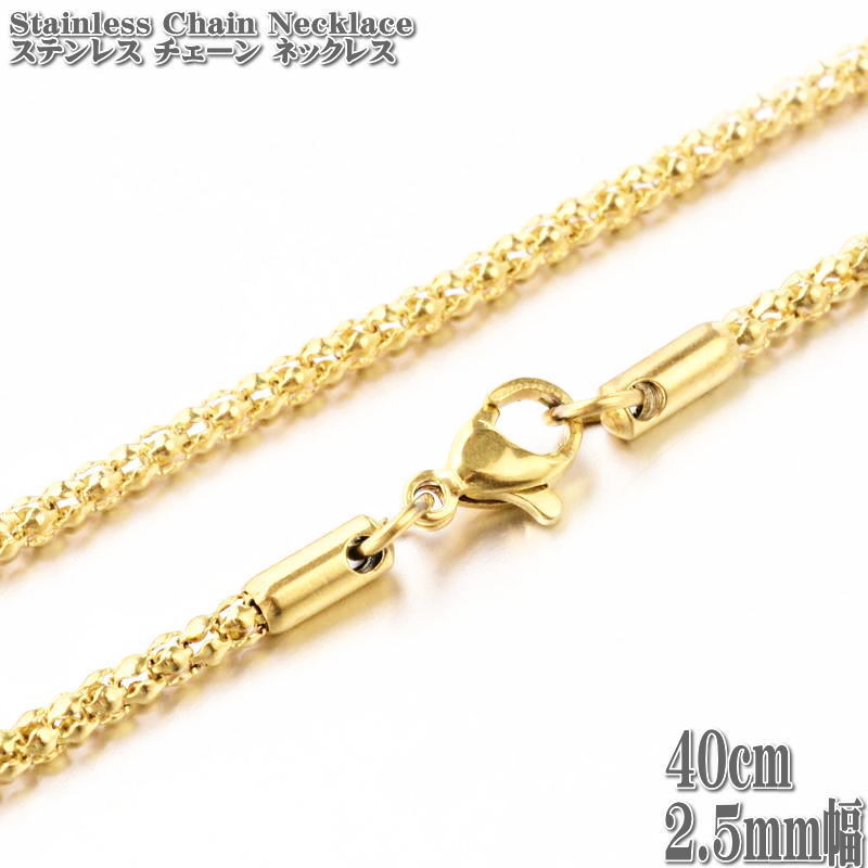| ステンレスネックレス ポップコーンチェーン 40cm 2.5mm幅 ネックレス ステンレス チェーン ネックレス ゴールド Stainless | |