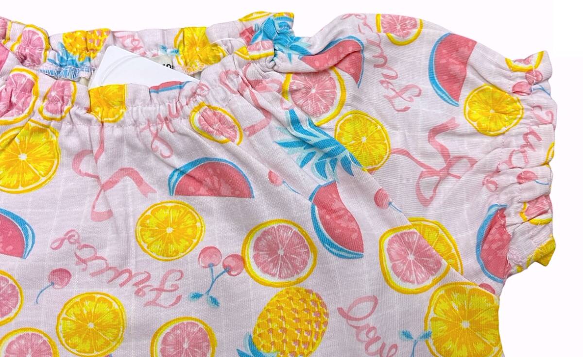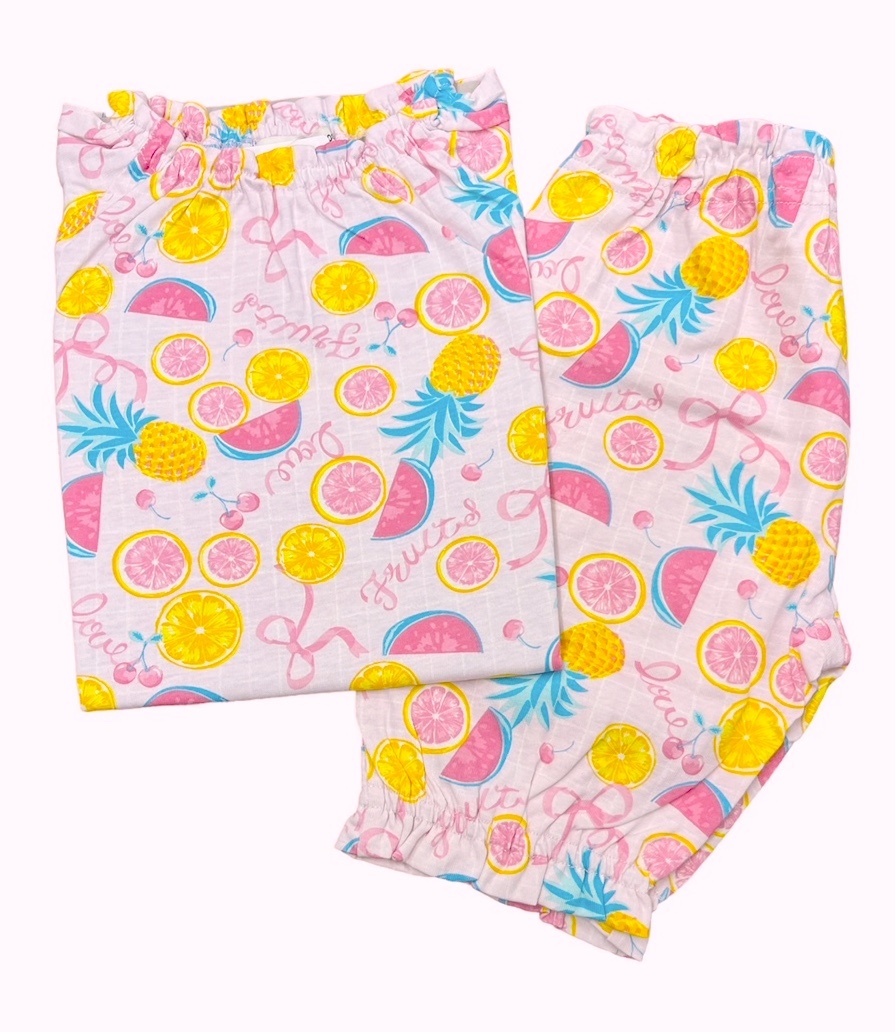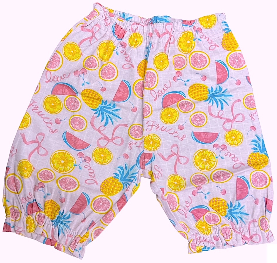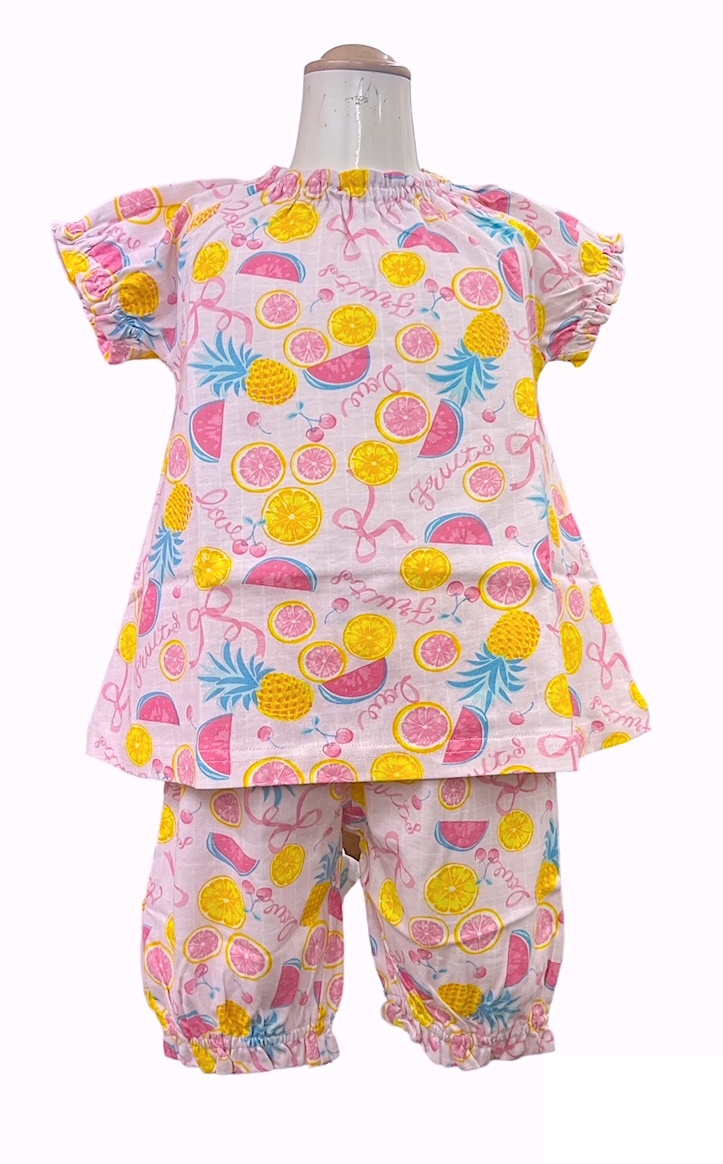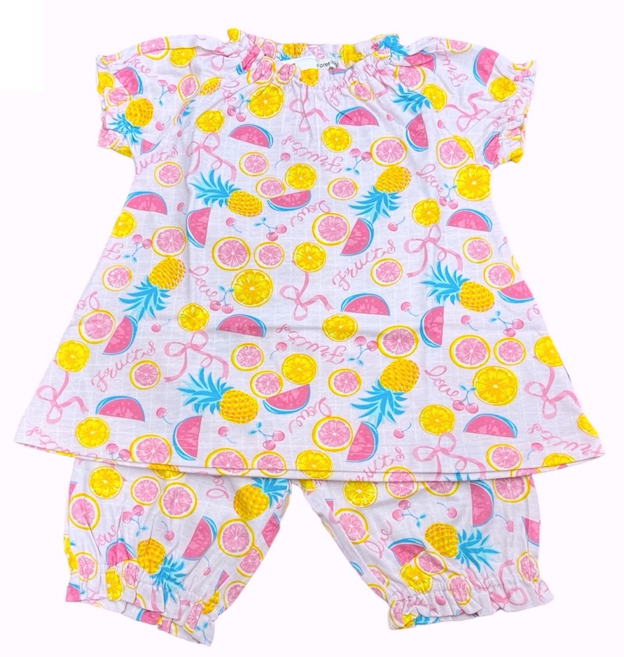 即決 新品タグ付 キッズフォーレ Kids Foret★夏のフルーツ柄 天竺生地★半袖パジャマ ハーフパンツ/pk★100cm(3-4才目安)¥1980