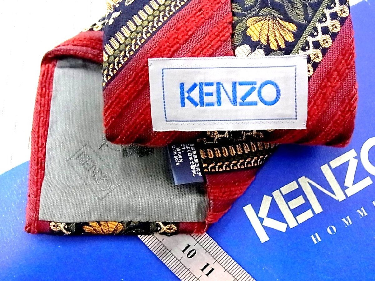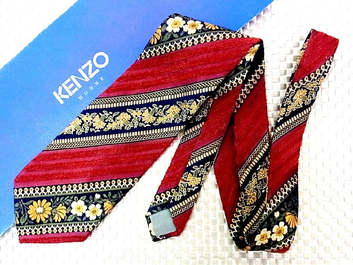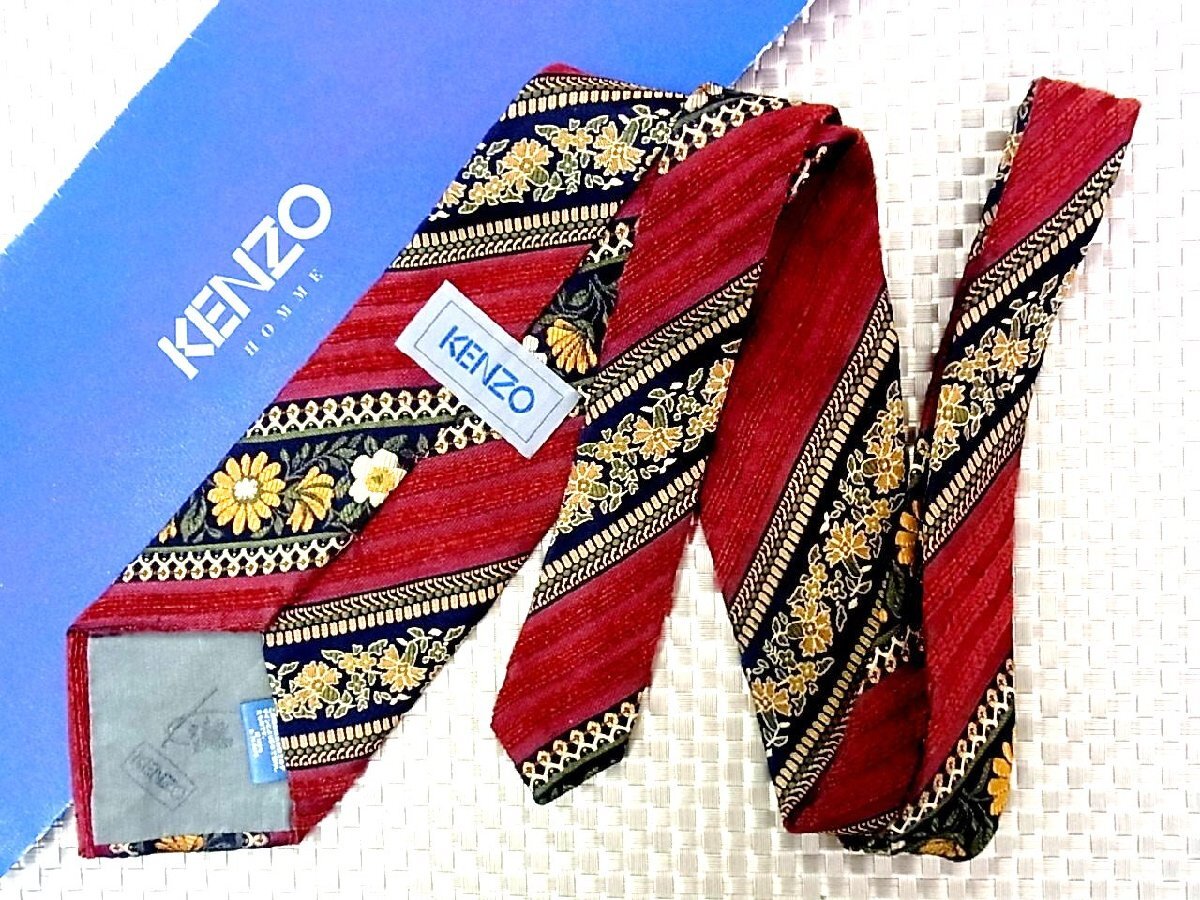★RB0151★【刺繍・花 植物 ストライプ 柄】ケンゾー【美品】ネクタイ