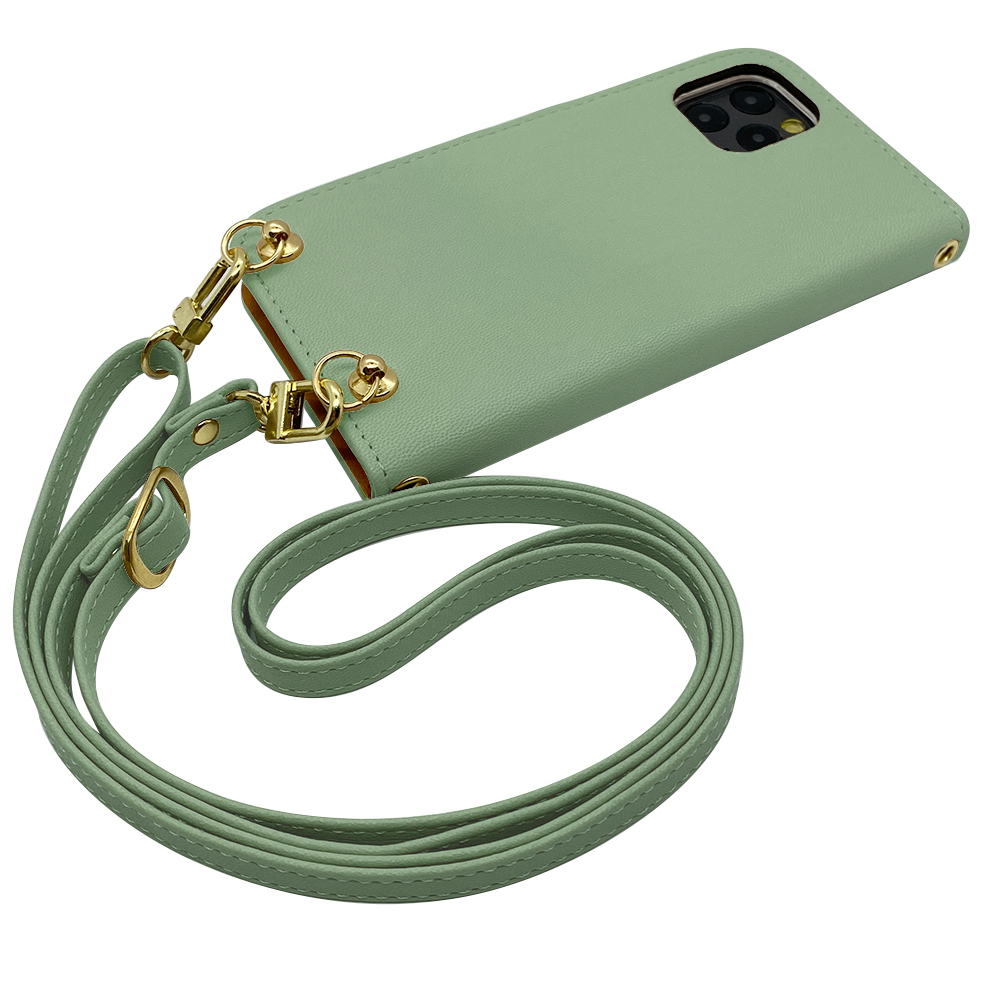 AQUOS R6 SH-51B スマホショルダー(手帳アッシュグリーン×ストラップ:アッシュグリーン)カバー 手帳 くすみカラー