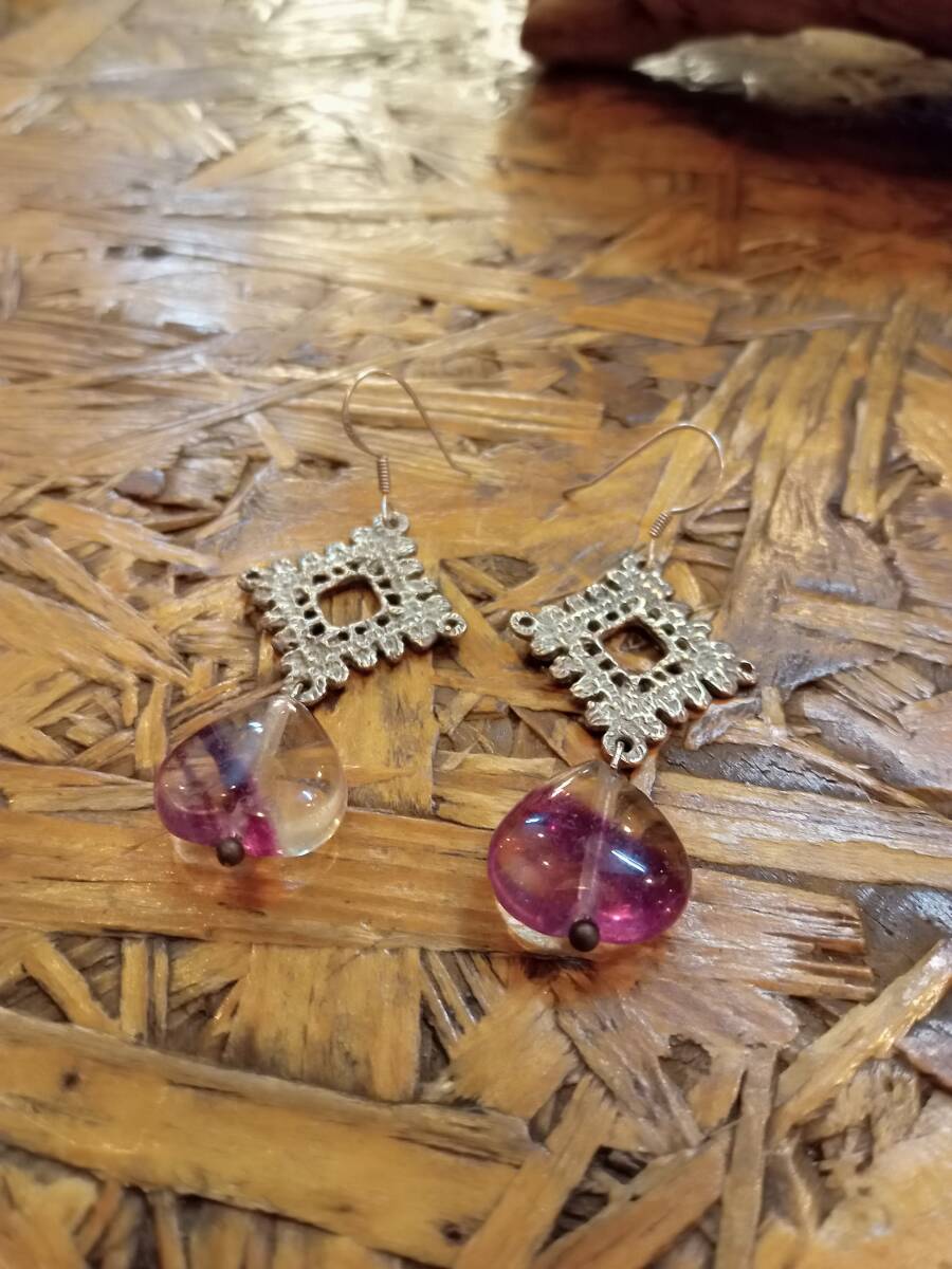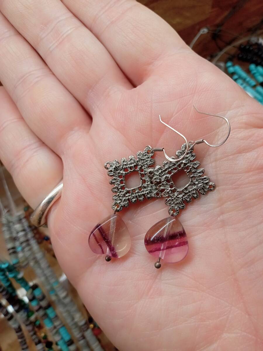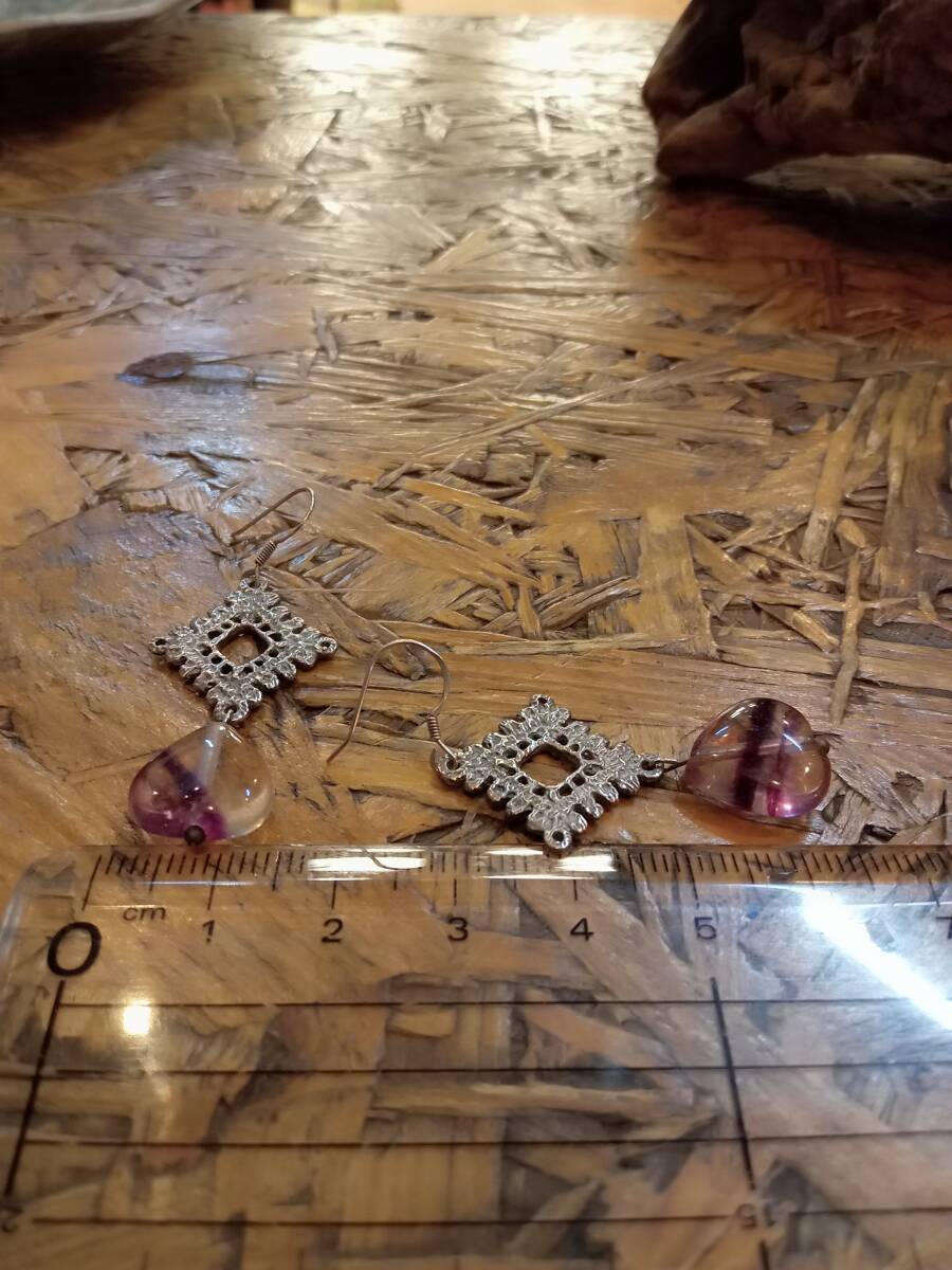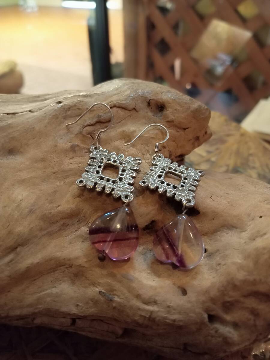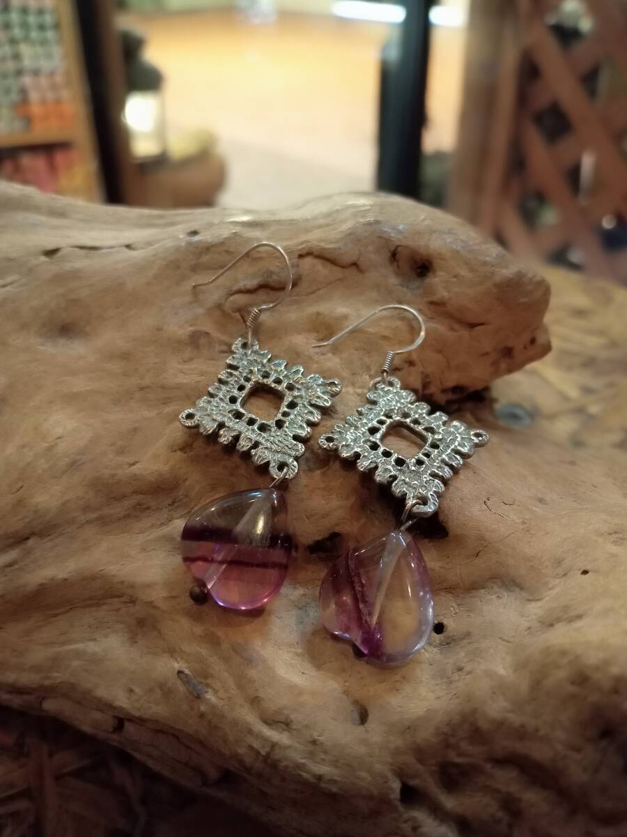 天然フローライトのピアスです