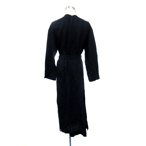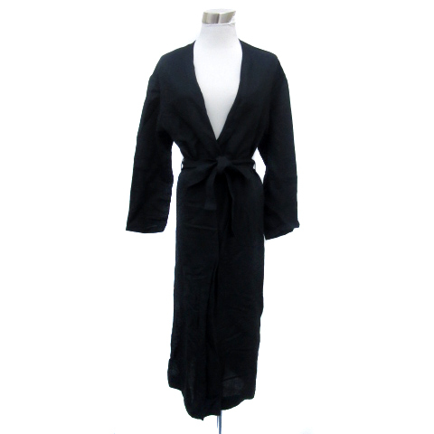 スローブ イエナ SLOBE IENA カーディガン ガウン ロング丈 前開き 無地 リボンベルト付き リネン 紺 ネイビー /YS12 レディース