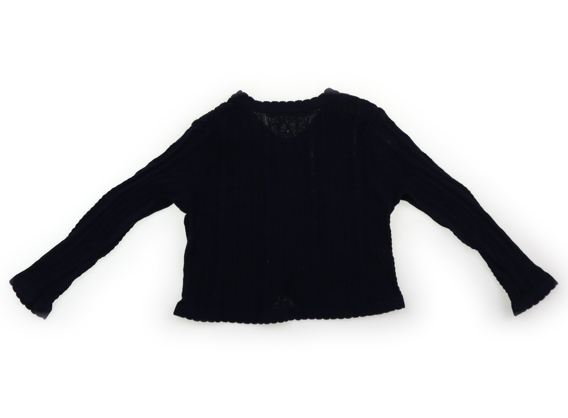衿まわり、袖口、裾、ヨレ感あり。全体に毛羽立ちあり。綿100%。ニット編みデザインです。使用感はありますが、まだまだお使い頂けそうです。薄手の軽い仕立てです。