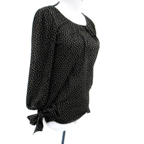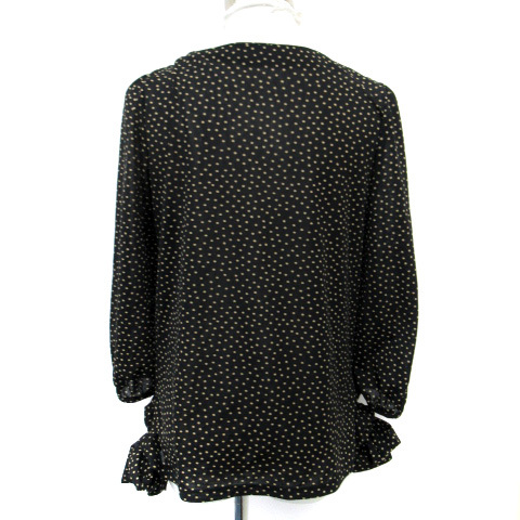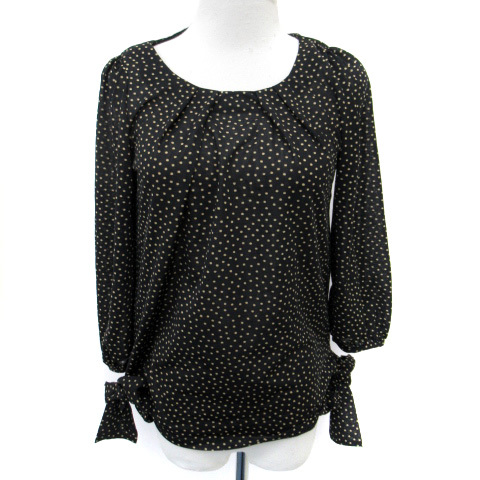 クチュールブローチ COUTURE BROOCH カットソー 七分袖 ラウンドネック ドット柄 リボン 38 黒 ブラック ベージュ /SM41 レディース