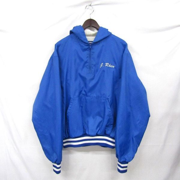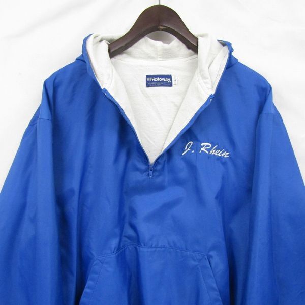 90s USA製 サイズ L Holloway ナイロン プルオーバー ジャケット ハーフ ジップ ジャンパー ブルー 古着 ビンテージ 3MA1108