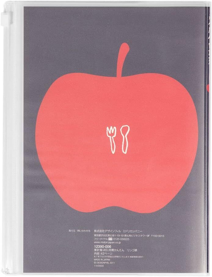 ミドリ 家計簿 A5月間 かんたん リンゴ柄 12390006