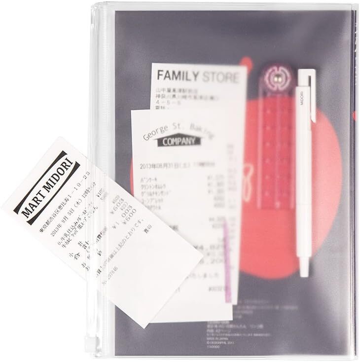 裏表紙にはレシートなどを入れるクリアポケットがついているので重宝です。