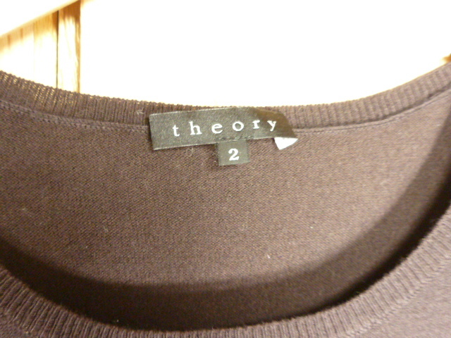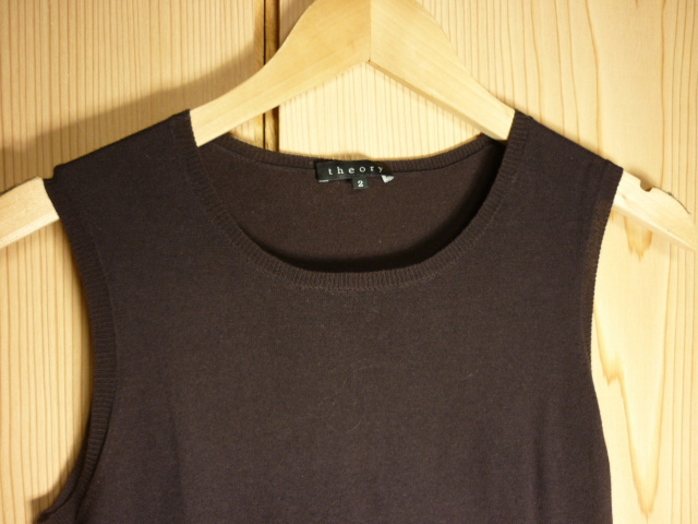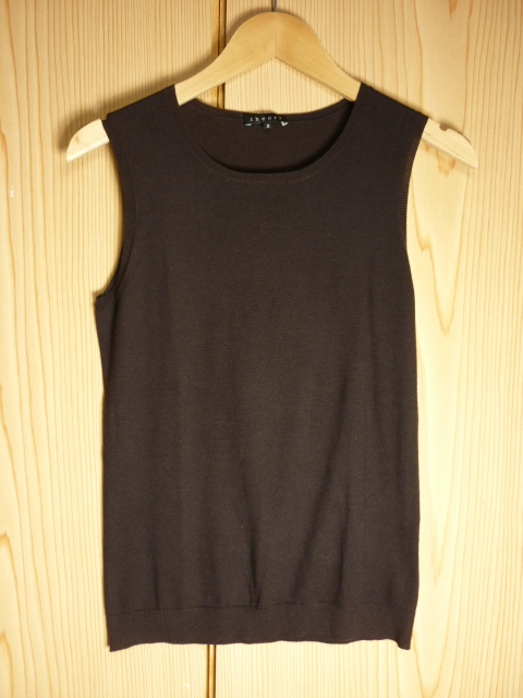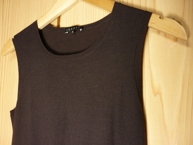 I35★美品★Theory(セオリー)・サイズ 2(M)【コットン/カシミヤ・ノースリーブニット】濃い茶色★商品詳細は記載文を・・