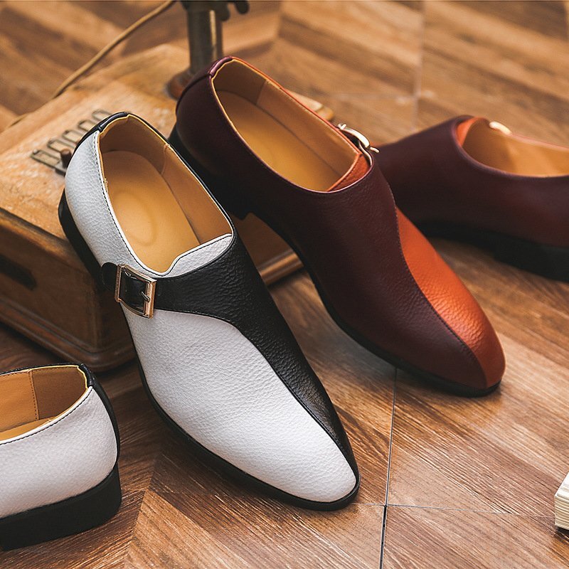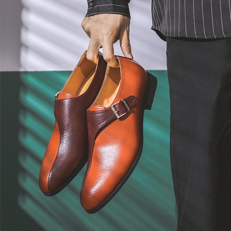 オシャレ メンズ靴レザー トレンド シューズ モンクストラップ ローファー 配色切替 ドライビング ブラウン 27.0cm mzm934