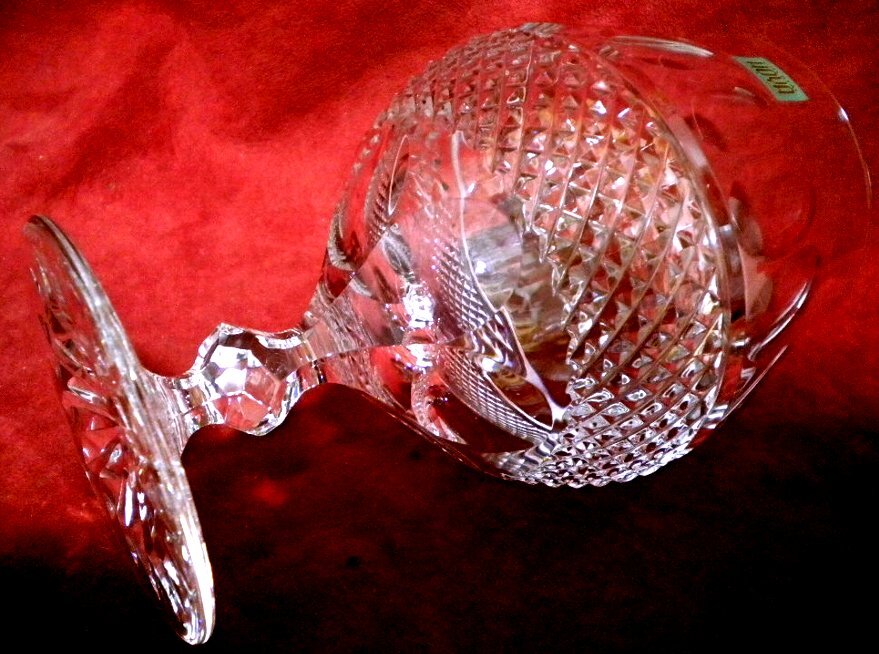 売切 HOYA 高級クリスタル ブランデー グラス大 纏購入特典有 15ディンプル 魚子紋 ボウル下部6面カット 飾ステム 台座16菊紋 容量大:360cc 日本製 未使用保管品 箱無 B/F 寸法:φ上66中87下68×H146mm 重量:260g、口元:1.5mm、 ・口元は口当たりの良いコールドカットで、グラスのボウル上部から中央にかけて15ディンプルカット、中央から下部にかけて光の反射で煌めく魚子(ななこ)カット、ボウル下部はステムにかけて6面カット、ステムは飾ステム、台座部分は16菊紋カット、ブランデーグラスでは、凝った作りになっております。・纏め購入特典:2点以上(他の商品可)纏めて購入頂ける場合、オークション出品の場合、ご希望の商品にご入札いただければ早期終了させて頂きます。質問からか、すでに御落札頂いている場合は取引連絡からご連絡ください。ご連絡頂き24時間以内のご入札が対象となります。表示金額で購入が出来、終了時間までの時間短縮になります。是非ご利用ください。・未使用品ですが長期保管品です。了解して購入される方へ。・HOYAのクリスタル製品は1945年に日本で誕生し、世界で高い評価を受けてきました。 光学技術を導入して作られるクリスタルガラスは、 その高い透明度と輝きで世界のトップクラスを誇り、デザイン性も高く評価されています。HOYAクリスタル事業は2009年3月をもちまして終了しておりますので、今後は新品の入手が難しくなる稀少なお品です。又、検品の為にぬるま湯で洗浄後、乾燥を行いクリスタルグラス特有の保管時の白化を防ぐために個別ラップを行っております。できる限り良好な状態でお手元に届くよう努めております。・発送は郵パックで御願いいたします。(はこBOONは近隣に取扱店が無い為不可)御住所確認後、送料を御連絡させていただきます。まとめ購入の場合、ご予定を取引ナビでご連絡いただければ、お取り置き後、同梱発送いたしますので宜しくお願いいたします。分類121F19 №0454