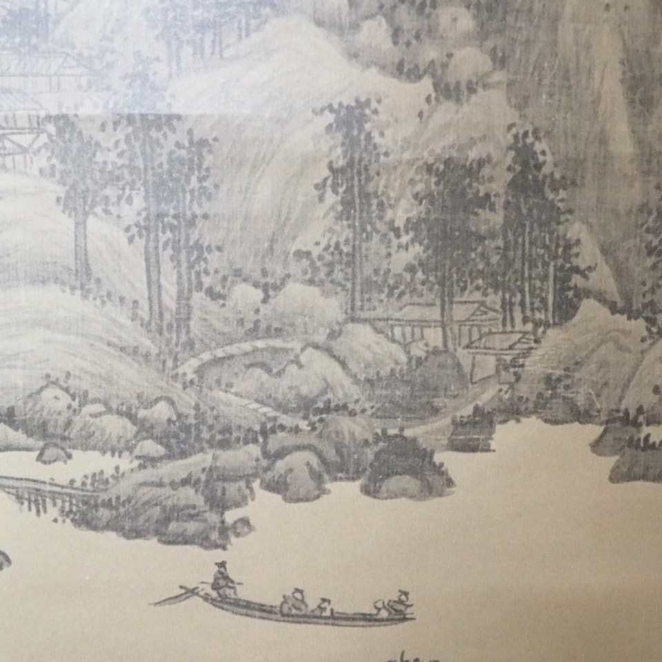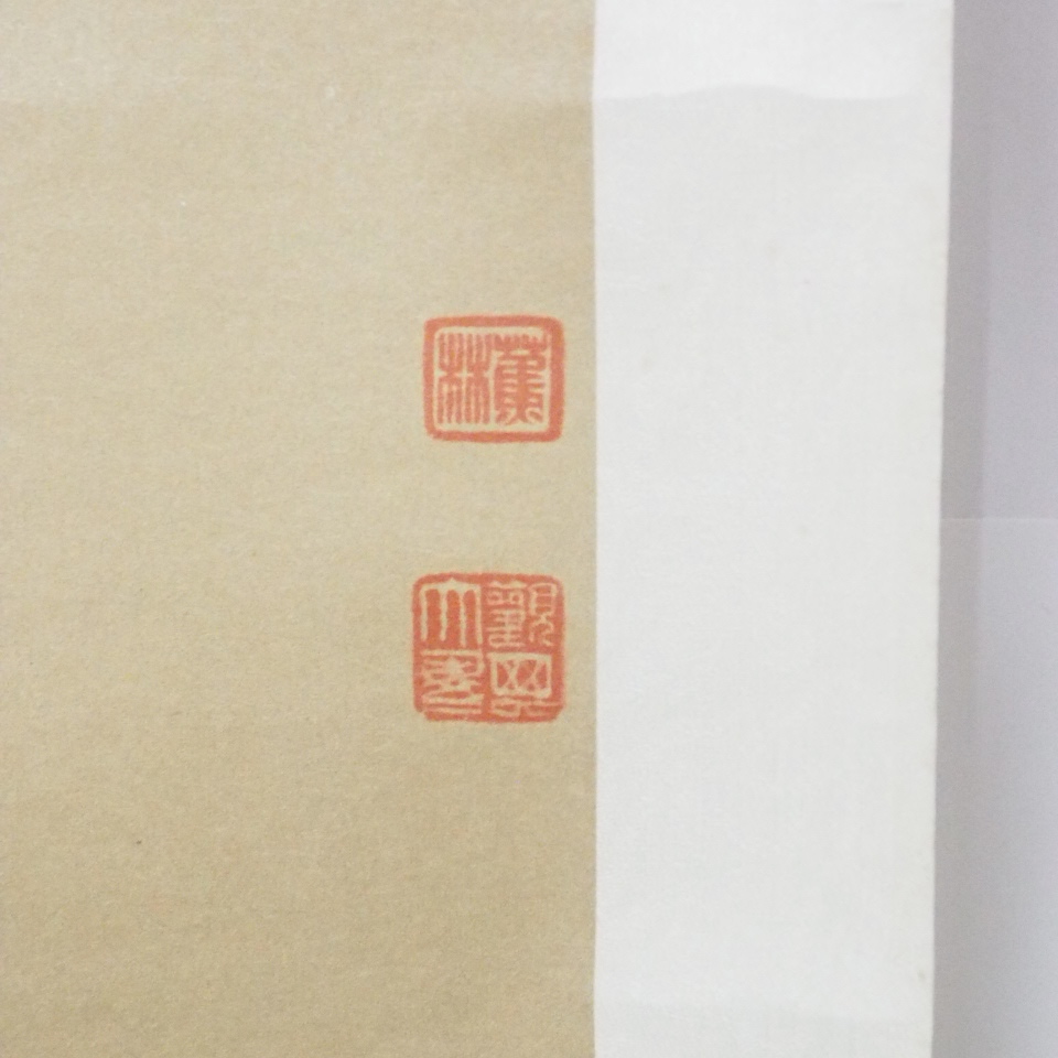 中国古美術 古玩 掛軸 呉鎮作清江春暁図 大幅紙本掛軸 山水図 絵画 元の文人画家 元末四大家の一人 箱無し KHO603