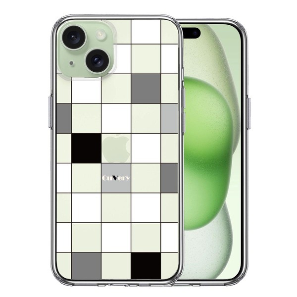 iPhone15Plus ケース クリア ブロック チェック 白 黒 スマホケース 側面ソフト 背面ハード ハイブリッド