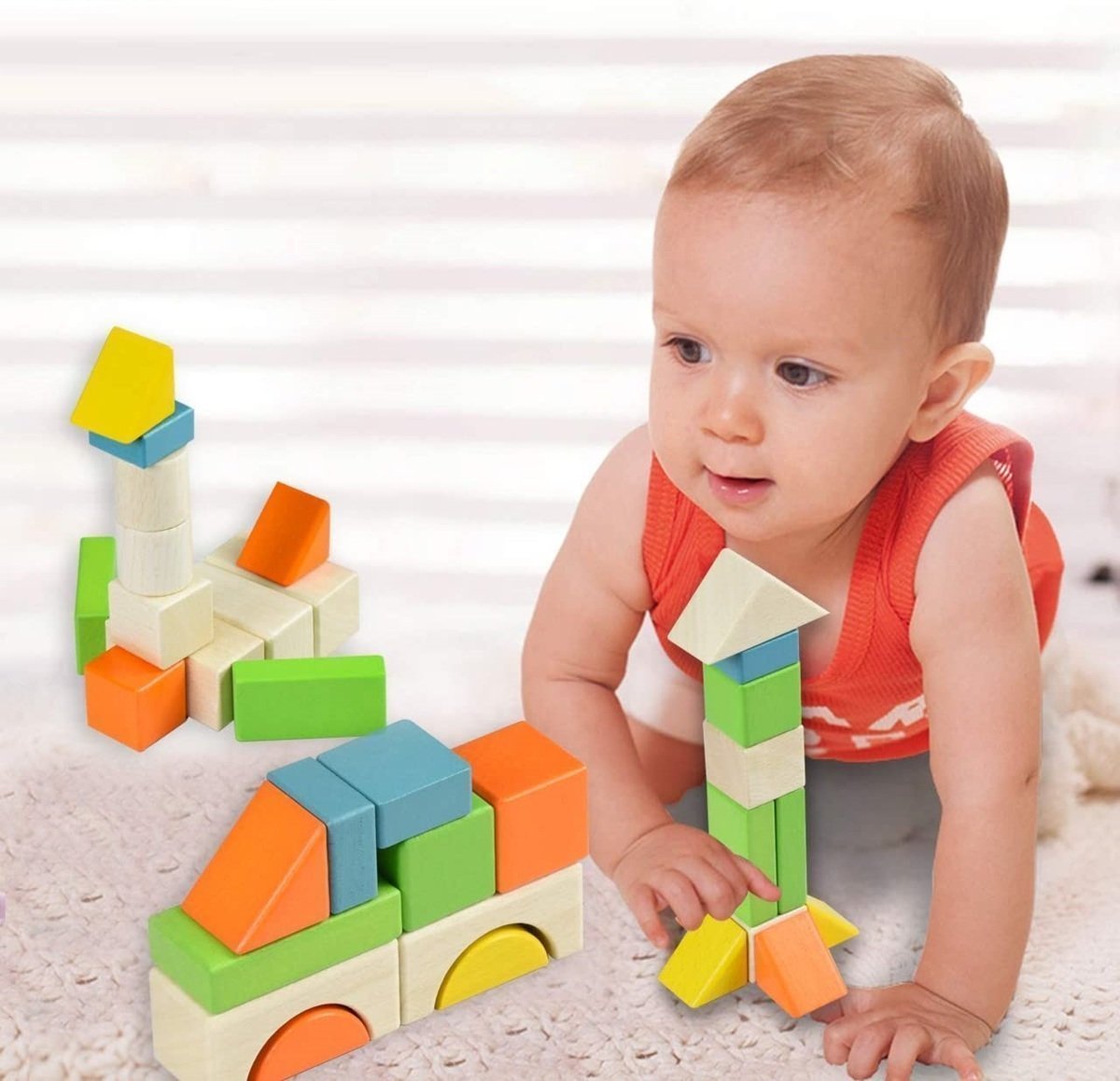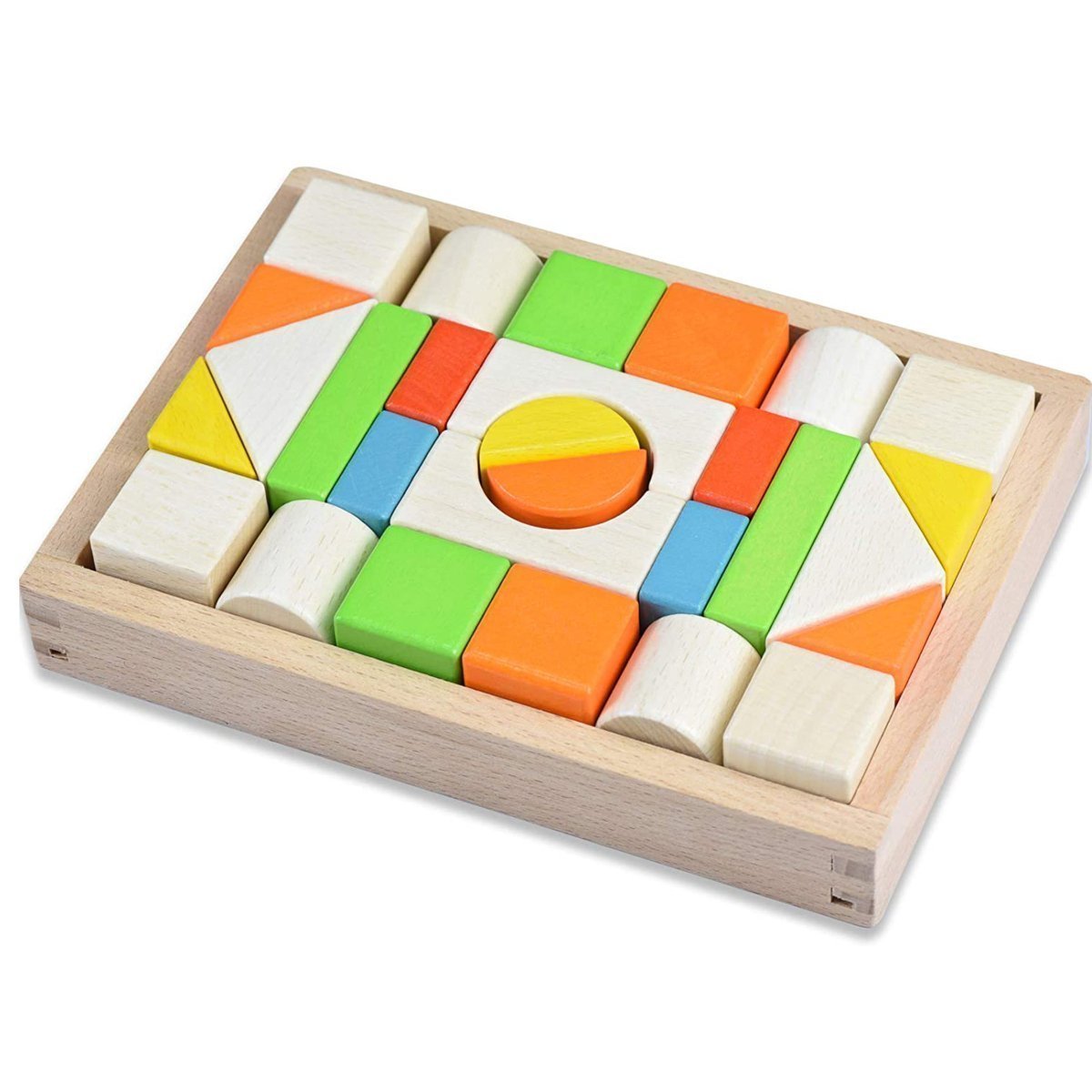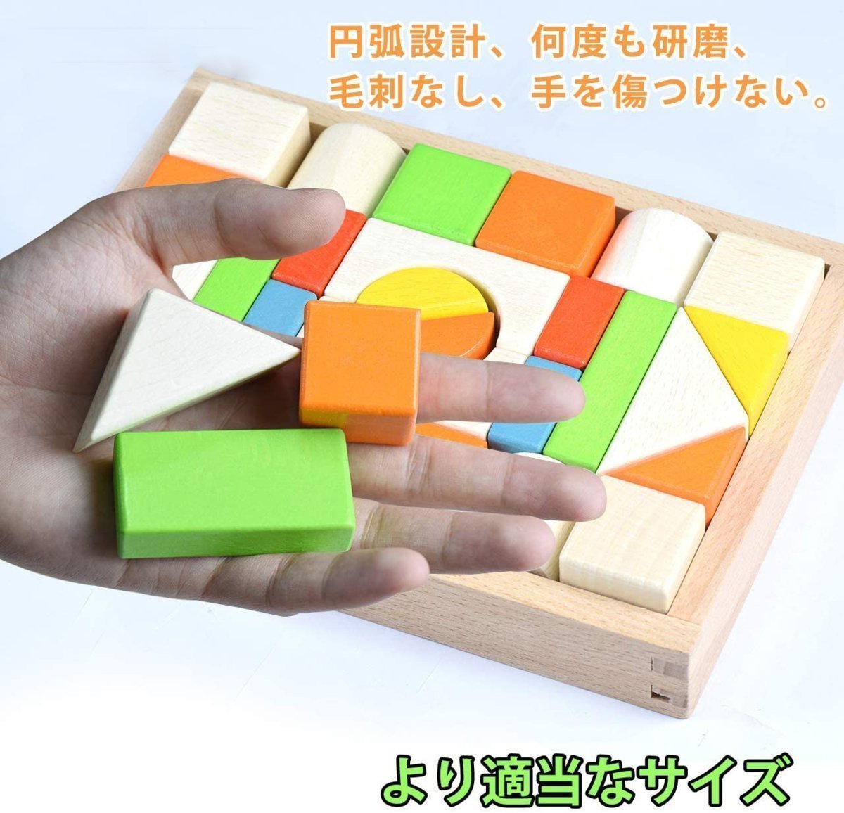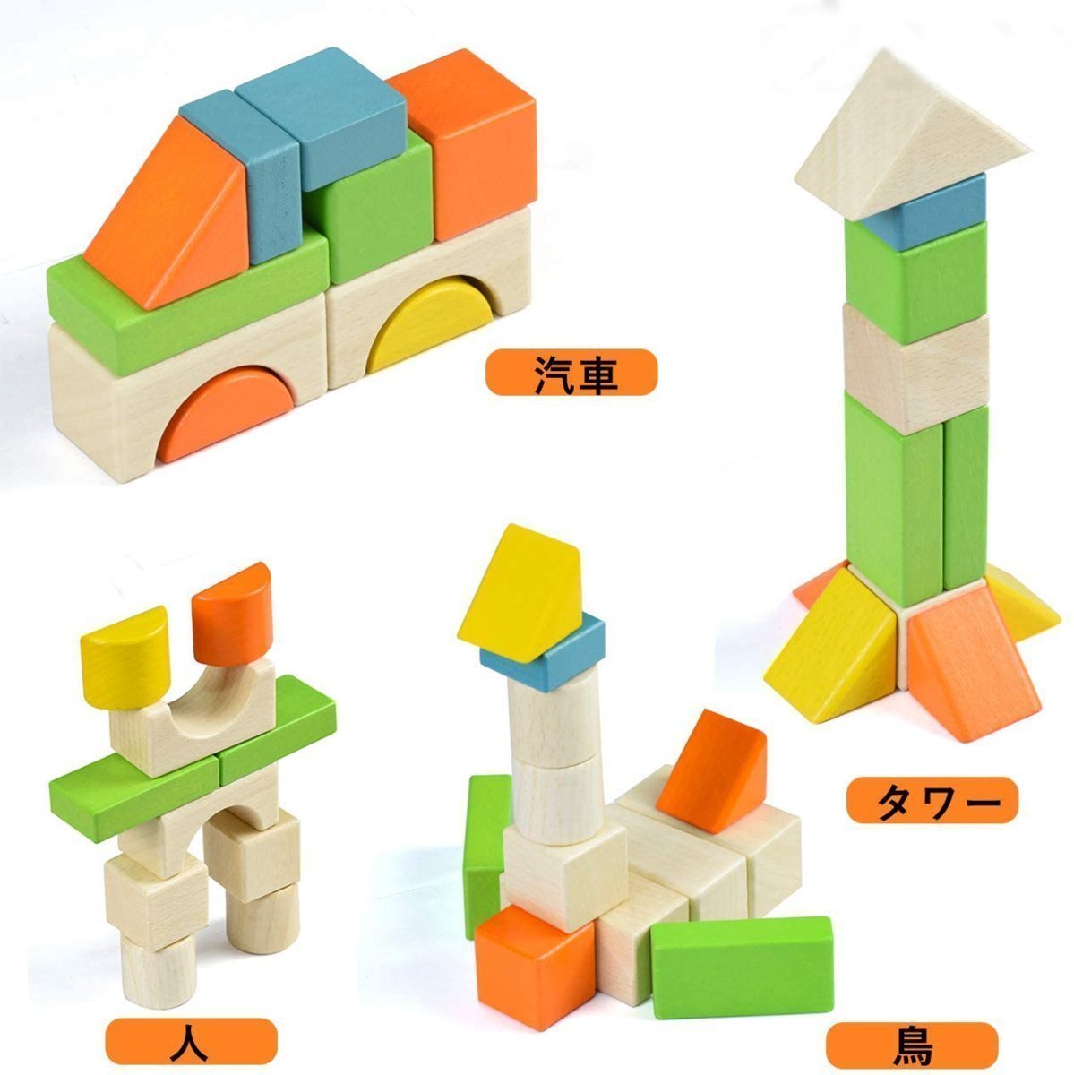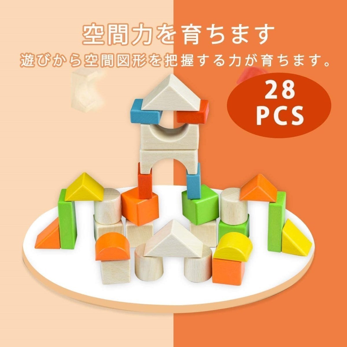 積み木 木製 ブロック モンテッソーリ 木のおもちゃ 天然 カラフル 建物構造 組立 立体パズル 色認識  知育玩具 28 PCS MAY521