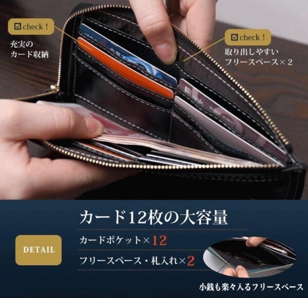 牛革を使用した上品な風合いでシーンを問わず長くお使いいただけます。スリムなサイズでも大容量の魅力。キャッシュレス化に合わせたトレンド感のある財布です。