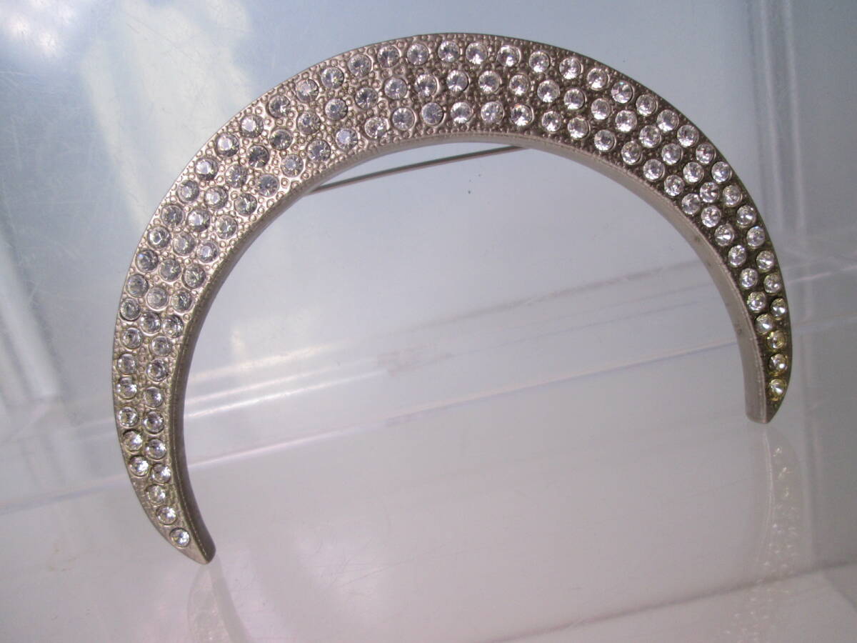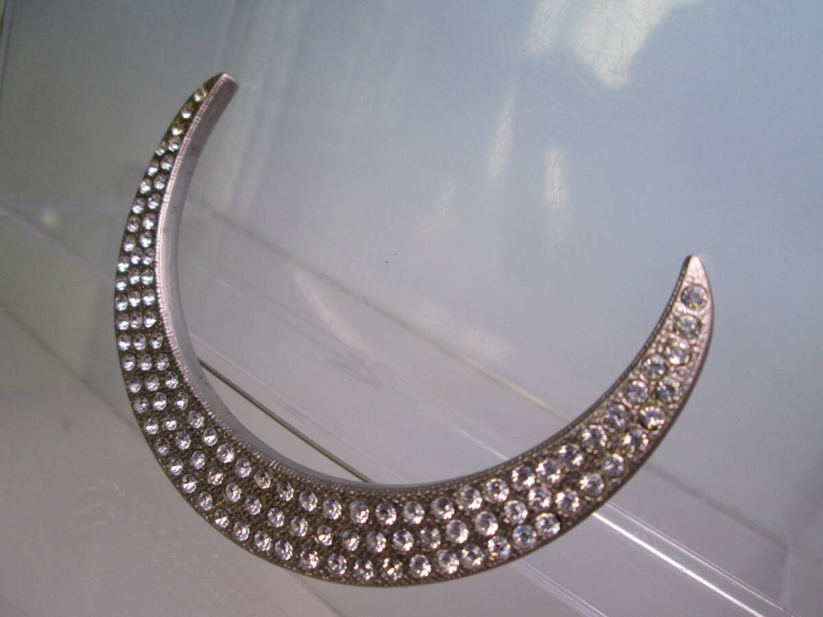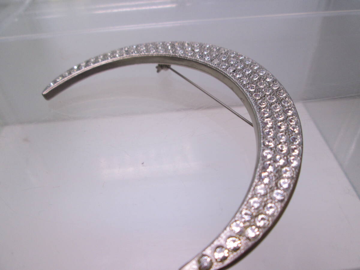 ☆ヴィンテージ 大きなラインストーンシルバーカラー三日月デザインブローチ 30g