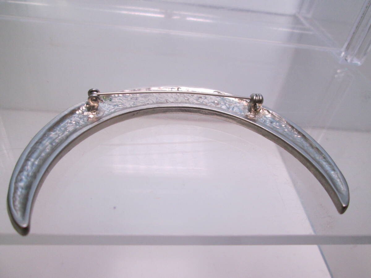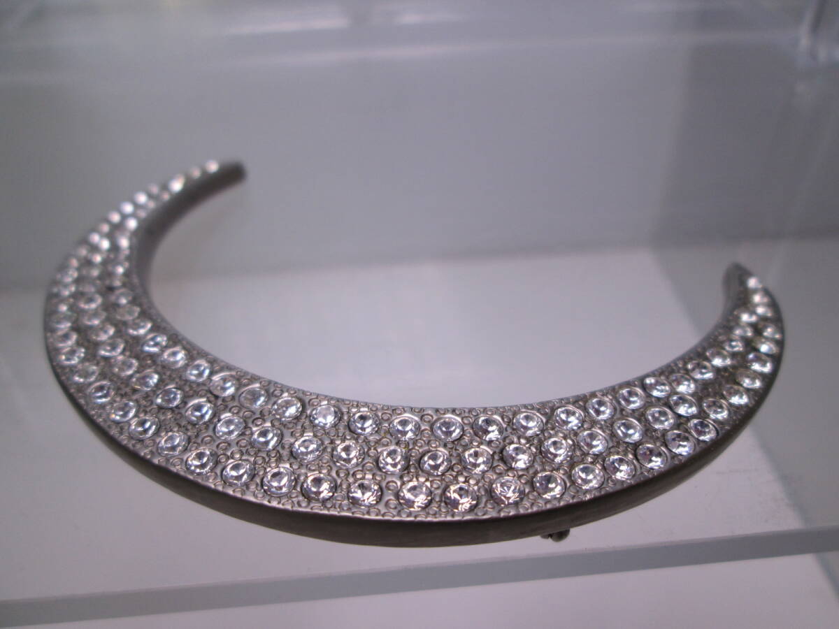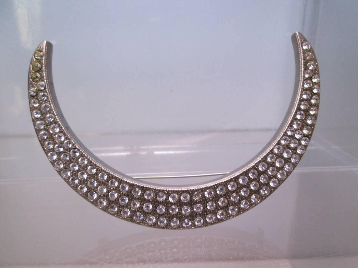 ☆ヴィンテージ 大きなラインストーンシルバーカラー三日月デザインブローチ 30g