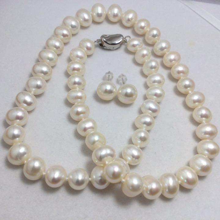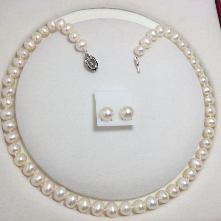 真珠ネックレス+ピアスセット本物淡水パール8-9mm冠婚葬祭フォーマルの定番人気柄天然色【期間限定セール・買得品】