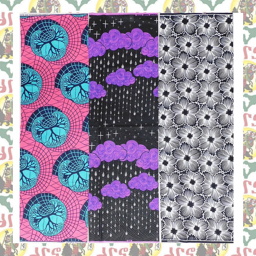 35cm幅 にカットされたアフリカンプリント生地 3柄セット お買い得パックです!!