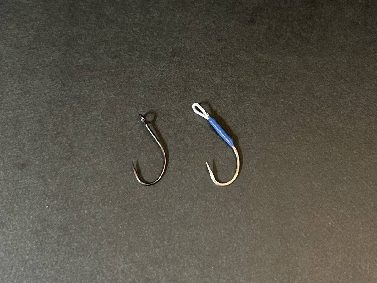 トラウト用ハンドメイドスイミングフックです フックサイズは、トラウト用ルアーのシングルフックサイズで制作しております 画像でお確かめ下さい シルバーベース ブルーアクセント スプーン用のフックになります スプーンはミノーと違いカラーの種類が多いため、ベースカラーに対し使われている差し色が多いものをセレクトしております この商品のスレッドは、ユニスレッドにブルーのカラーがないようなので、東邦産業ラッピングスレッドを使用しております スプーンサイズ 5~10g 尺イワナ 尺ヤマメ用に最適なフックだと思います 北海道ではなかなかお目にかかれないので、アメマス40cm ニジマス35cmを基準に考えたフックセットになります #4に関しては、実際にお客様に御使用頂き、感想 要望等を取り入れながら進化させていこうと考えております よろしくお願いいたします! フックサイズ #4 フックカラー シルバー アイカラー ホワイト アイサイズ ノーマル アイ強度 PE-60lb スレッドカラー ブルー ヒネリ あり 品番 SSB4 フックは、国内工場で生産された物から厳選し、伊勢尼 チヌ マダイ マス 丸セイゴ等のエサ釣り用フックを、サイズとカラーから選んで使用しております アイは、PEライン8本編み50lb以上をメインに、ケブラート バッキングラインからフックサイズ等に合わせて選択しております 多少傷が付いてもいいように、オーバースペックの太さの物を選択しております スレッドは、 ユニスレッド6/0をすべてのフックに使用しております 制作途中に6回以上フックサイズに応じてハーフピッチを施していますので、多少解れても大丈夫です すべてのフックは、接着剤で固定後、レジンコート加工しております 強度はしっかり実釣テストをしてますのでご安心下さい すべてのフックは、自然渓流でテストしています こちら北海道のため、対象魚がニジマス アメマス イトウとなり、#6以上のフックは、ニジマスのサイズ40cm以上が、1,2回ジャンプされても獲れる物の組み合わせを、実釣テストで見極め最適化したものを販売しております #6未満のフックは、本州の、ヤマメ イワナ等で使用されることをイメージして制作販売してますが、こちらではあまりテストにならないので、購入後気になることがあれば、お教え下さい 今後の制作に生かしたいと思います フックが鋭いため、向こうあわせでフッキングすること多く、大きくあわせると口がきれて逆にバレることがあります 追いあわせを入れる時は魚のサイズにご注意下さい 自作経験のある人は感じたことがあると思いますが、エサ釣り用のフックは、直に岩や木などの障害物に当たり擦れることを考えて作られていないので、シンキングミノーやスプーンで川底を転がすようなパターンや、岩の入った浅めの瀬を横切らせるようなパターンを多用するとルアー用フックより針先が鈍りやすいと感じてます 私は600番くらいの紙やすりを1cm角くらいに折った物をルアーケースに忍ばせ、少しでも鈍りを感じたら、その場で研いで使ってます がまかつさんのHPで、簡単な研ぎ方が紹介されてますので、是非ご覧ください 送料無料 普通郵便で発送いたします その他の発送方法をご希望の方はご相談下さい!【別途費用が発生致します】 1本ずつ手作りで、確実に獲れることをメインで制作しているため、商品の見た目にばらつきがありますが、ご了承下さい 十分に検品後発送致しますが、商品到着後、フックが甘い スレッドが解れてるなど 釣果に関わる不具合がある場合は、返品交換致します ご連絡下さい | |||