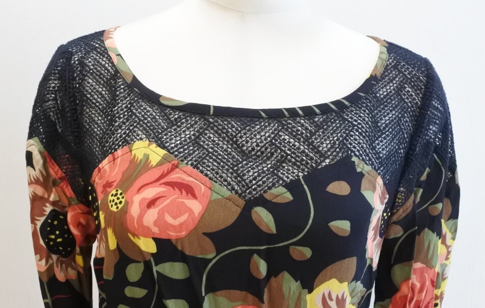 PLENTY プレンティ ワンピース 長袖 メッシュ 0サイズ ブラック 花柄 ミニ丈 arimyk m0310 | |||