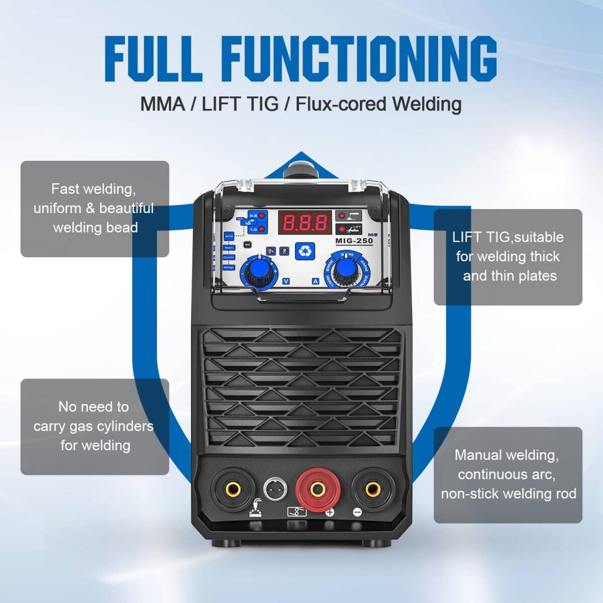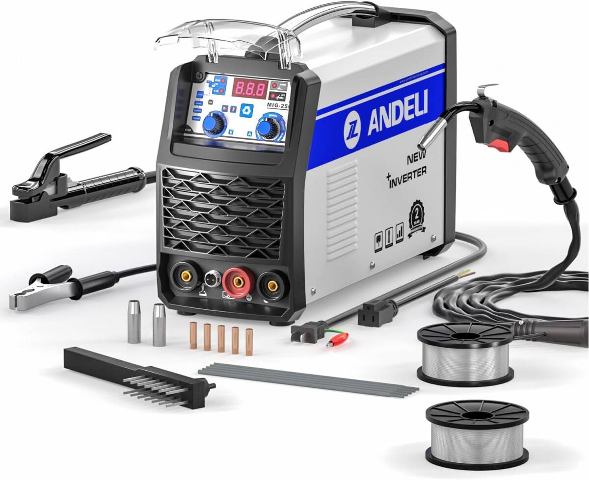 ANDELI 半自動溶接機 120AノンガスMIG/アーク溶接/lift TIG 100V/200V兼用 インバーター直流溶接機 MIG溶接 半自動 MIG-250ME