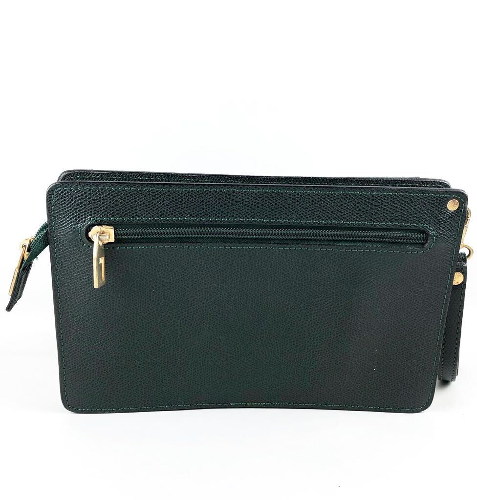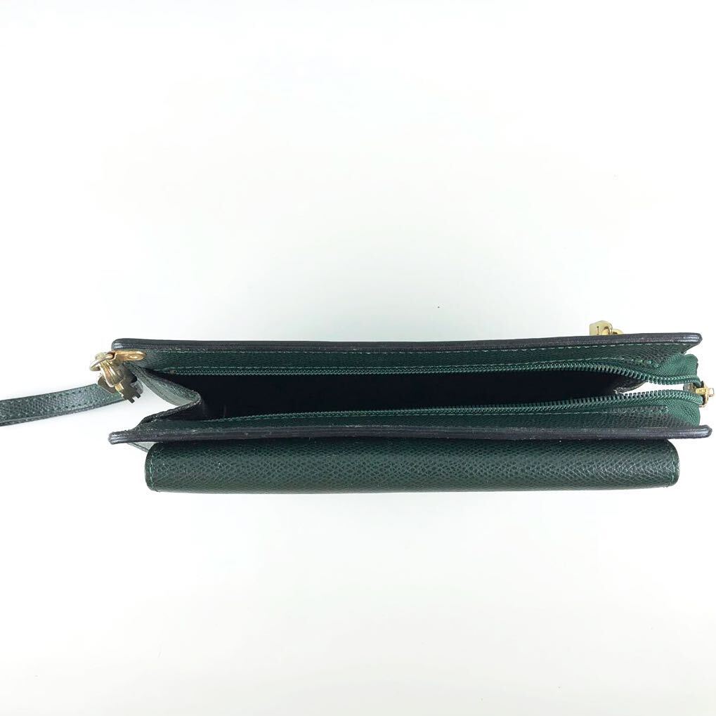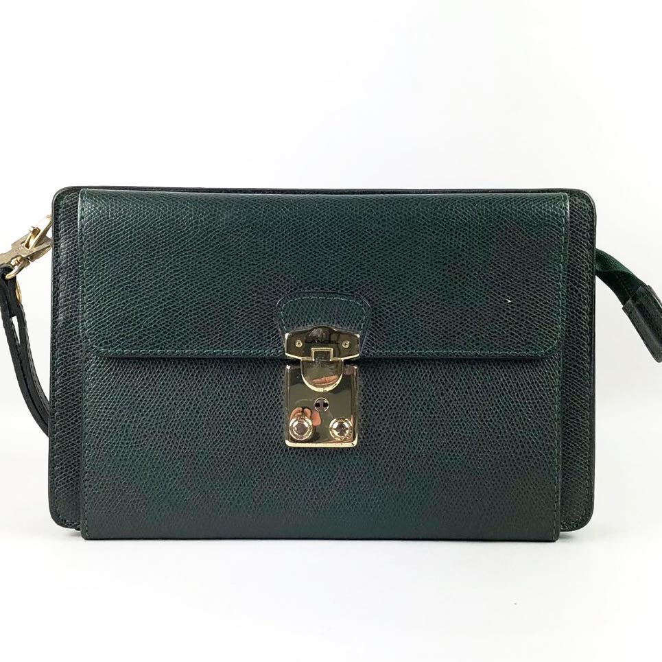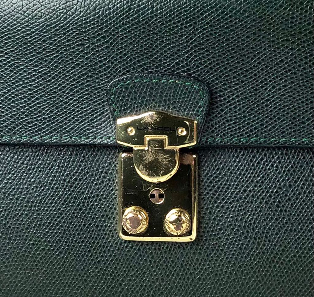 【ビジネス】セカンドバッグ/ポーチ/ランセル  LANCEL/レザー/グリーン/ゴールド金具★鍵付き