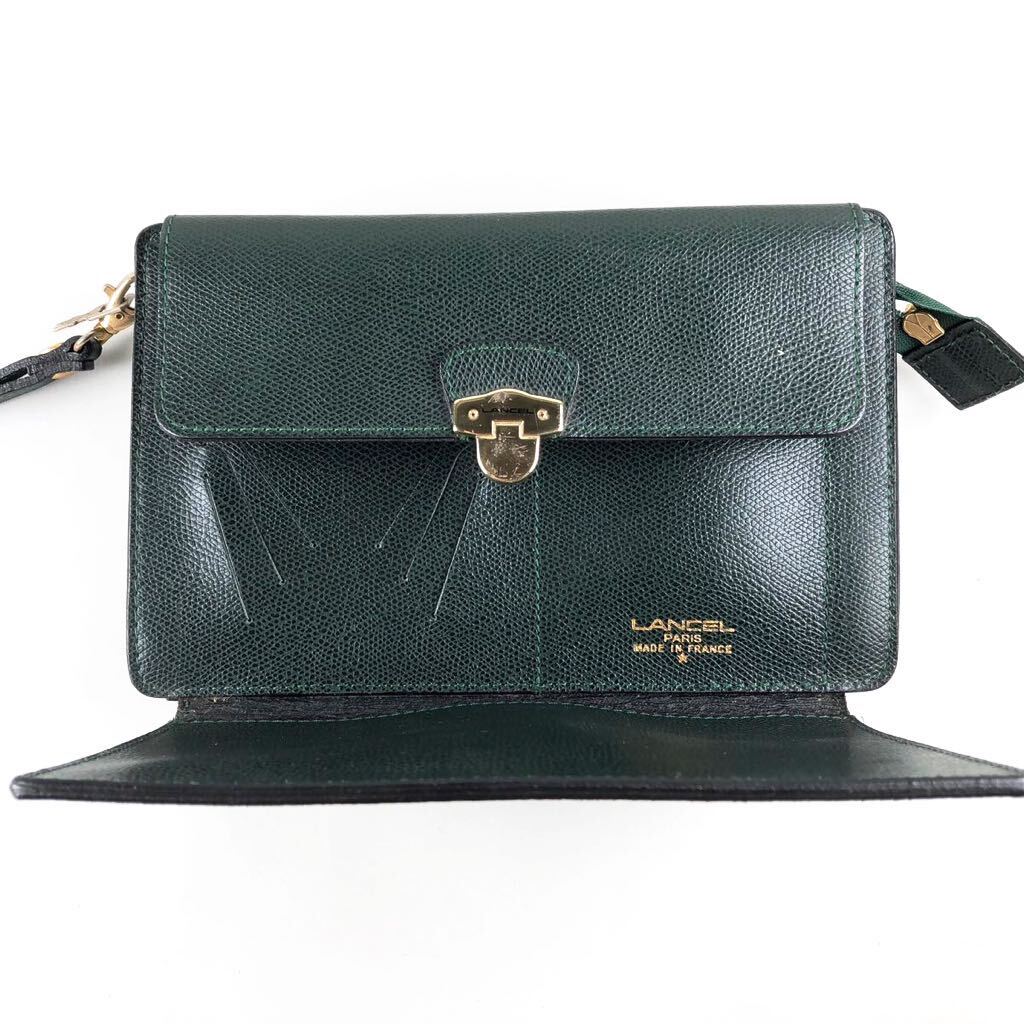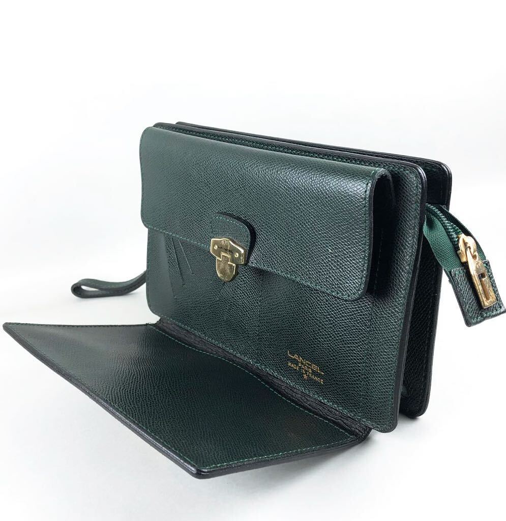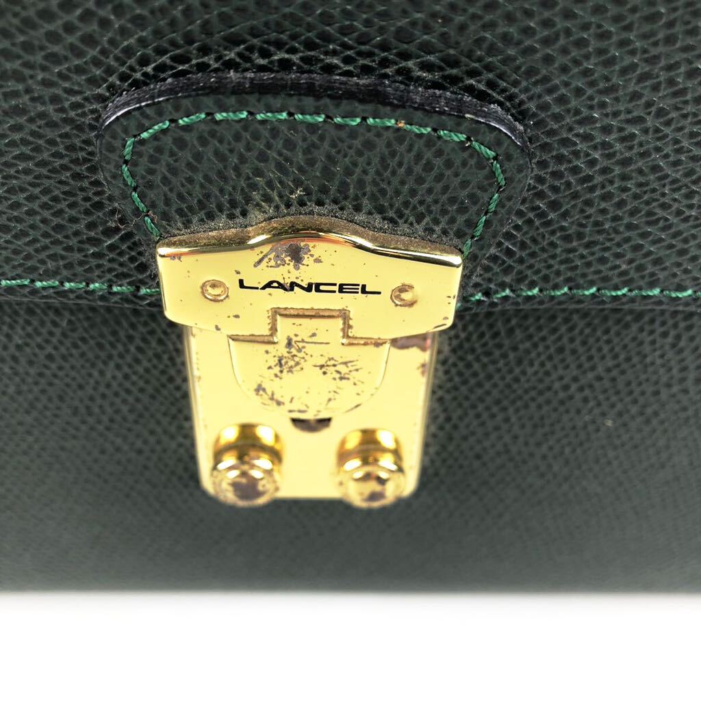 【ビジネス】セカンドバッグ/ポーチ/ランセル LANCEL/レザー/グリーン/ゴールド金具★鍵付き