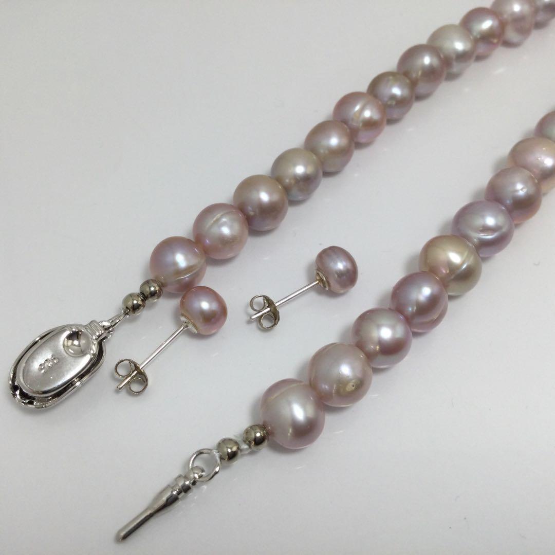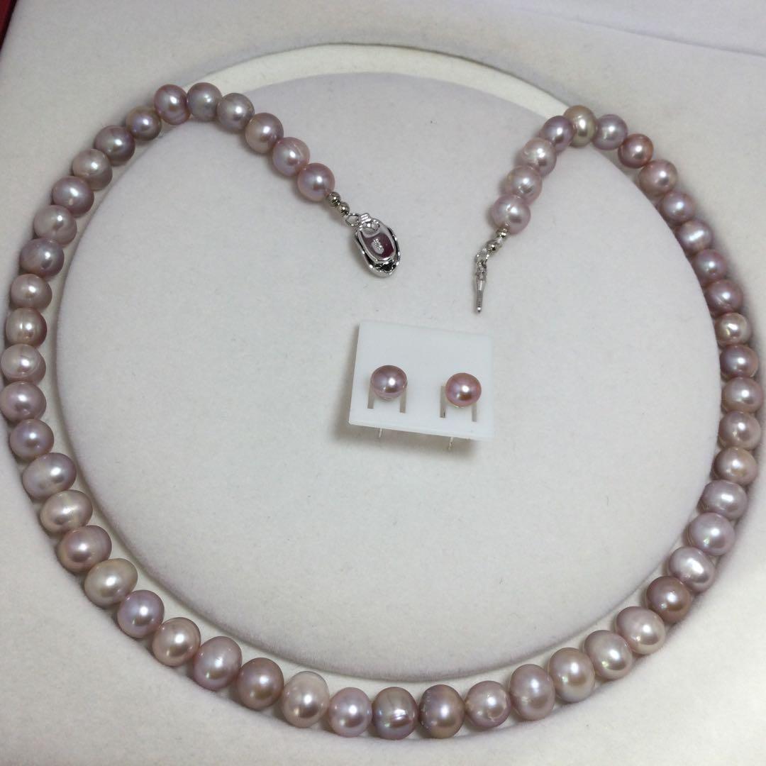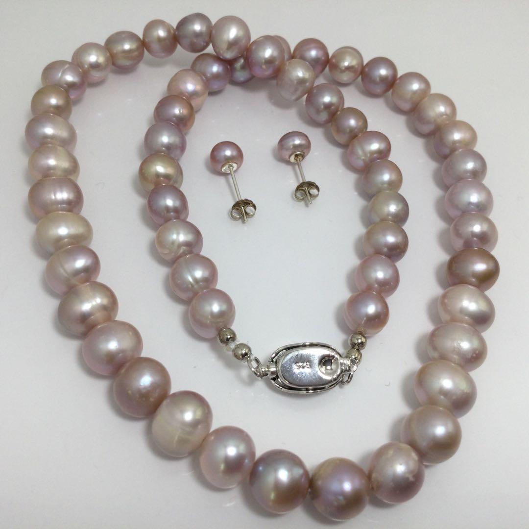 最新モデル作品真珠淡水パールネックレス+ピアスセット人気高め一押し商品本物天然色パープル・ピンク系