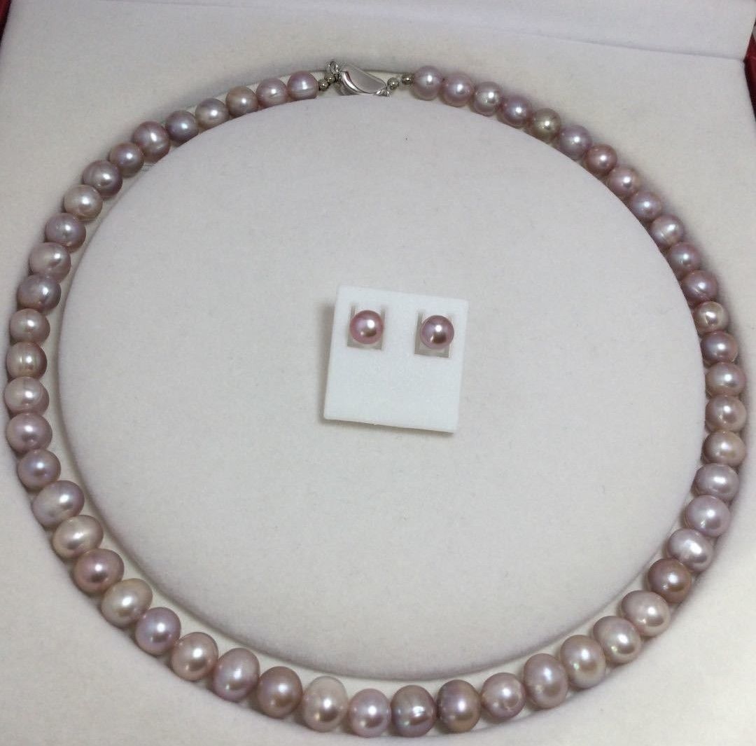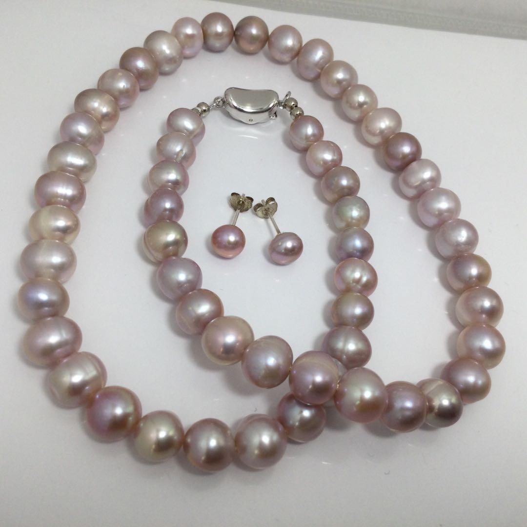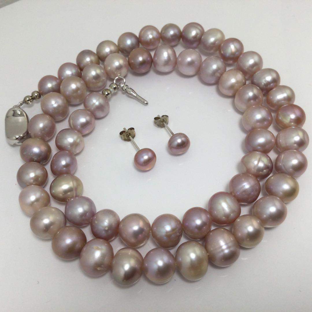 最新モデル作品真珠淡水パールネックレス+ピアスセット人気高め一押し商品本物天然色パープル・ピンク系
