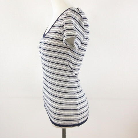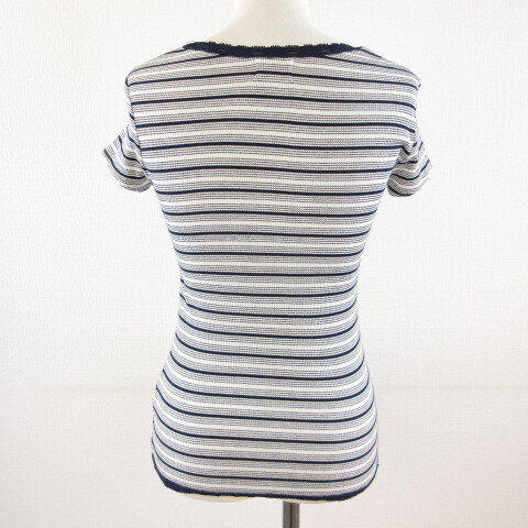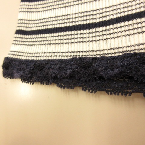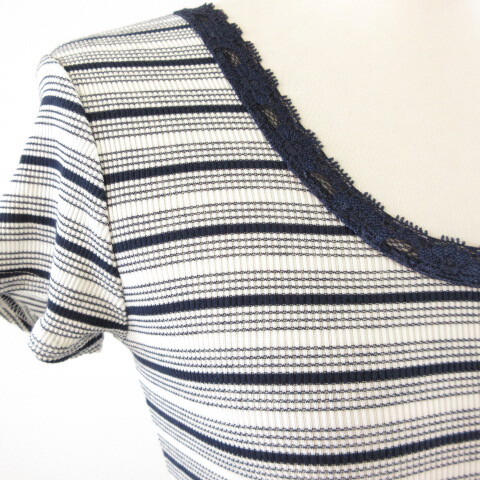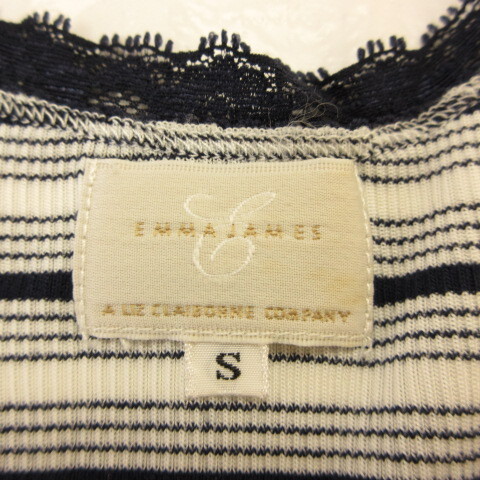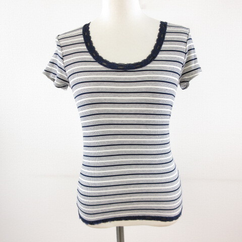 エマジェイムス EMMAJAMES カットソー 半袖 レース ボーダー 紺 白 S *T695 レディース