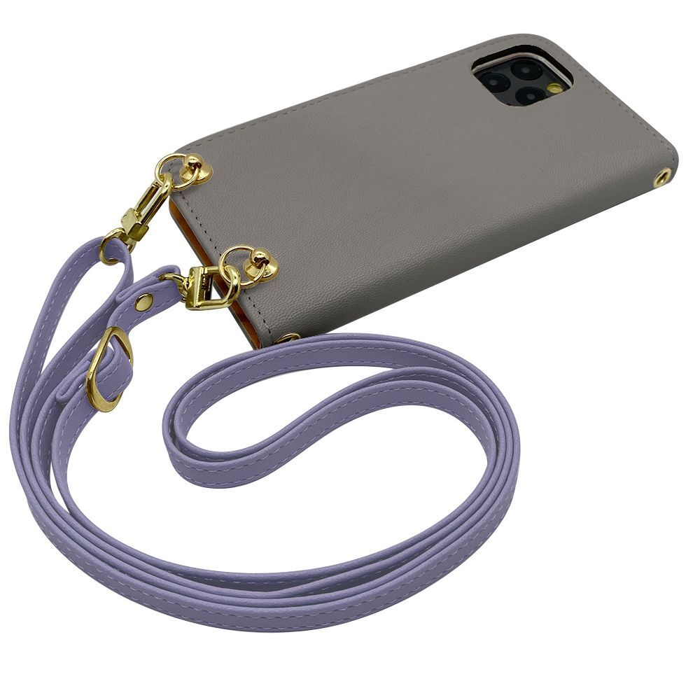 Xperia 1 II SO-51A SOG01 スマホショルダー(手帳アッシュグレー×ストラップ:アッシュラベンダー)カバー 手帳 くすみカラー